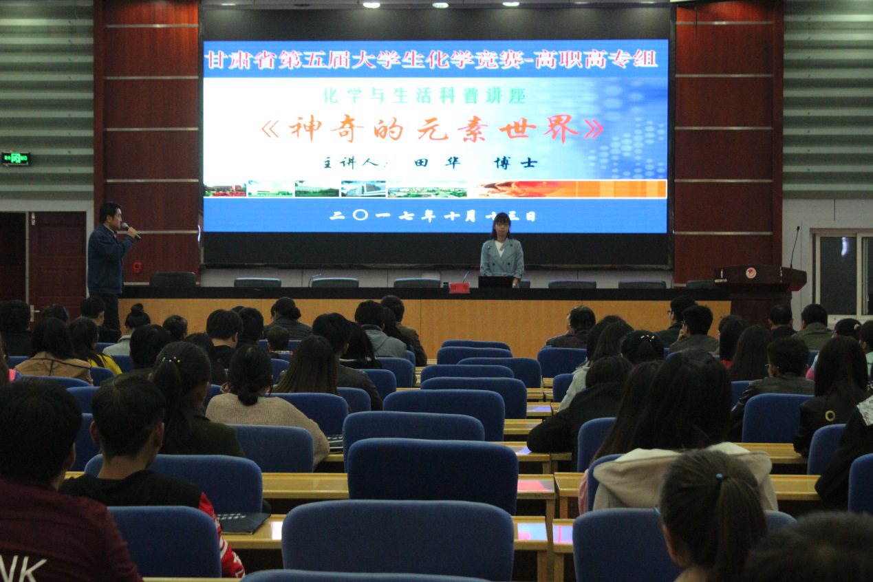 为引导员工认识和理解生活中的化学现象,关注社会和生活中的化学问题,提高基本的科学素养,10月13日下午,由甘肃省化学会、甘肃省科学技术普及学会主办,兰州石化职业技术公司承办的科普报告会,在兰州石化职业技术公司东区多功能报告厅召开。科普报告会也是甘肃省第五届老员工化学竞赛(高职高专组)的系列活动之一,来自全省10所参赛院校代表队全体成员参加了报告会。