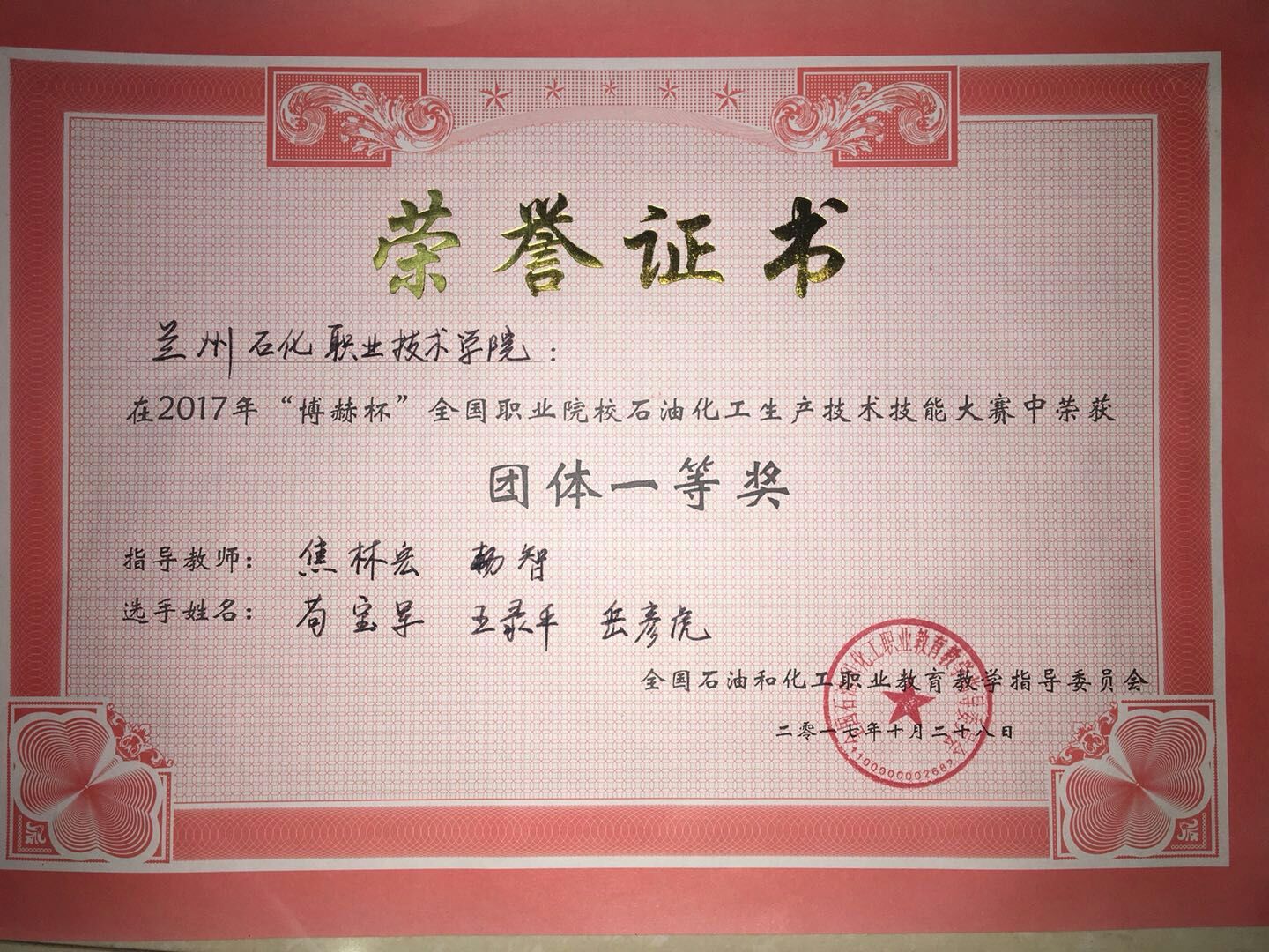 公司代表队获2017年“博赫杯”全国职业院校石油化工生产技术技能大赛一等奖
