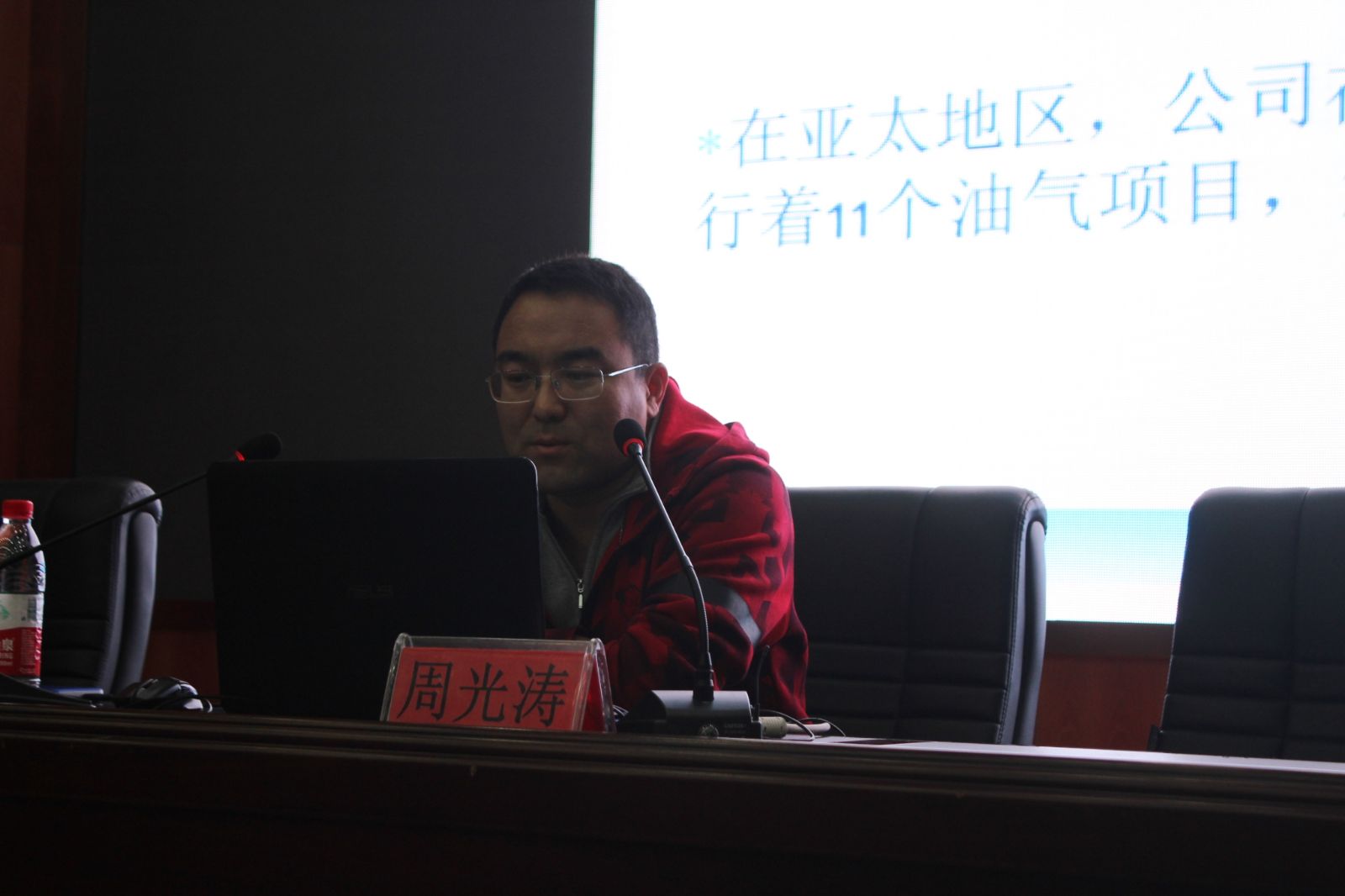 讲座上,周海涛介绍了中石油海外项目近些年的设计规划、尼日尔津德尔炼油有限公司项目的背景、尼日尔项目的整体介绍以及尼日尔项目的特点。他讲道:中国石油海外勘探开发公司已经在非洲、中亚、南美、中东、亚太形成了集勘探开发、管道运输、炼油化工、销售一体化的完整产业链。在非洲、中亚、亚太共有20个国家45个项目。在尼日尔,中国石油天然气集团公司和尼日尔能矿部合资建设的津德尔炼油有限公司已经完成了上游油田勘探开发、中游管道运输及下游炼油厂的建设。目前津德尔炼油厂已投入生产,效益可观。并详细介绍了津德尔炼油厂的特点。活动最后,团总支书记席满意进行了讲座总结,并希望同学们在强化理论知识与生产实践结合的同时,适当提高英语等基础课的学习。总结之后,他组织同学们观看了中石油的海外工作人员在尼泊尔工作生活以及非洲当地人民生活的视频。