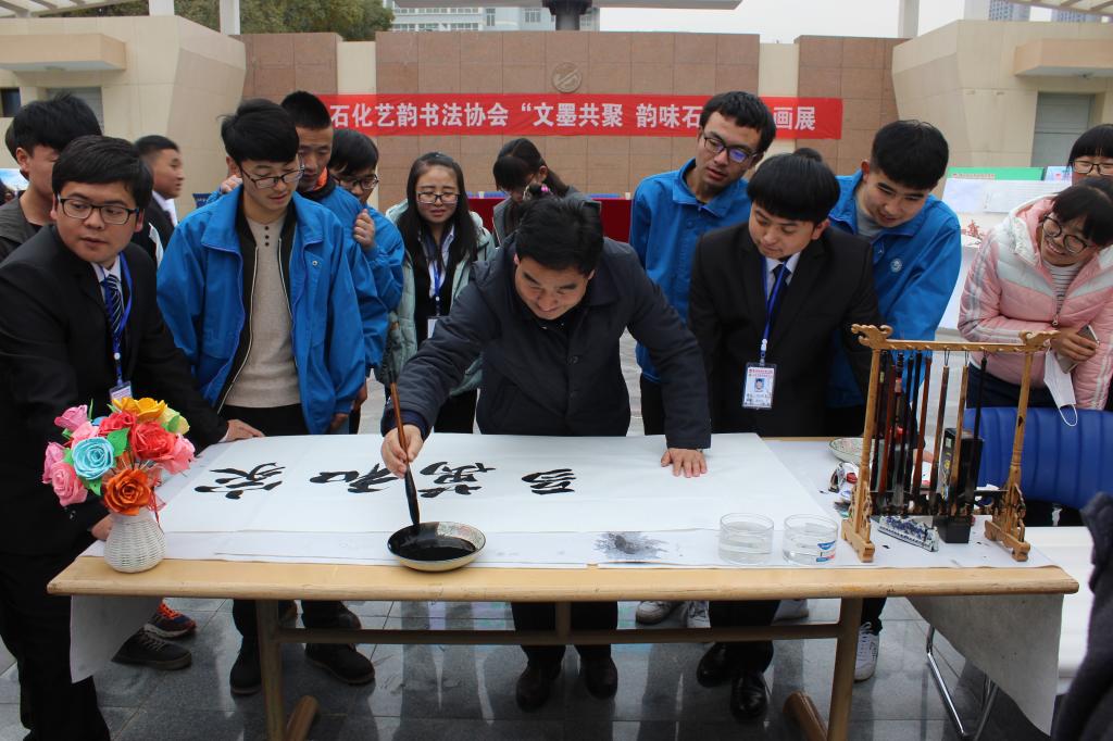 11月18日中午,TapTap点点艺韵书画协会举办“文墨共聚,韵味石化”书画展,党总支书记呼小洲,经理助理赵立祥,书画协会指导老师姜璋及团总支书记席满意出席了本次书画展。