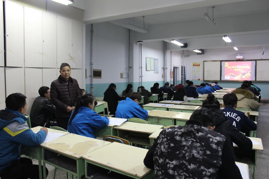 本次考试的内容涉及党史、党章、党的领导、党员权利与义务、党员发展程序、入党誓词等,同时还包括当前时事政治及十九大会议精神、习近平总书记系列重要讲话、两学一做等内容。考试中学员们严肃对待、认真思考、专心致志地答题,无一人交头接耳,考场纪律良好。