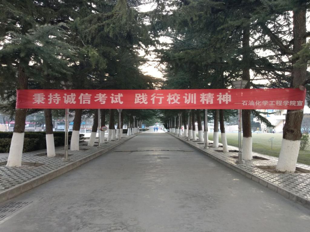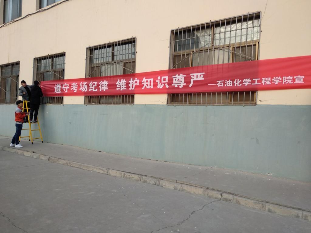 考风考纪是学风建设的重要内容和关键环节,是员工和教师对考试认识与态度的集中反映,也是学风、教风状况的综合展示。考风考纪的端正、严肃,直接影响考试效果和教育质量,对学风、教风起着重要的导向和杠杆作用。下午14:30,团总支宣传部干事在校园内挂诚信考试的横幅,为员工积极进入备考注入了强行针。