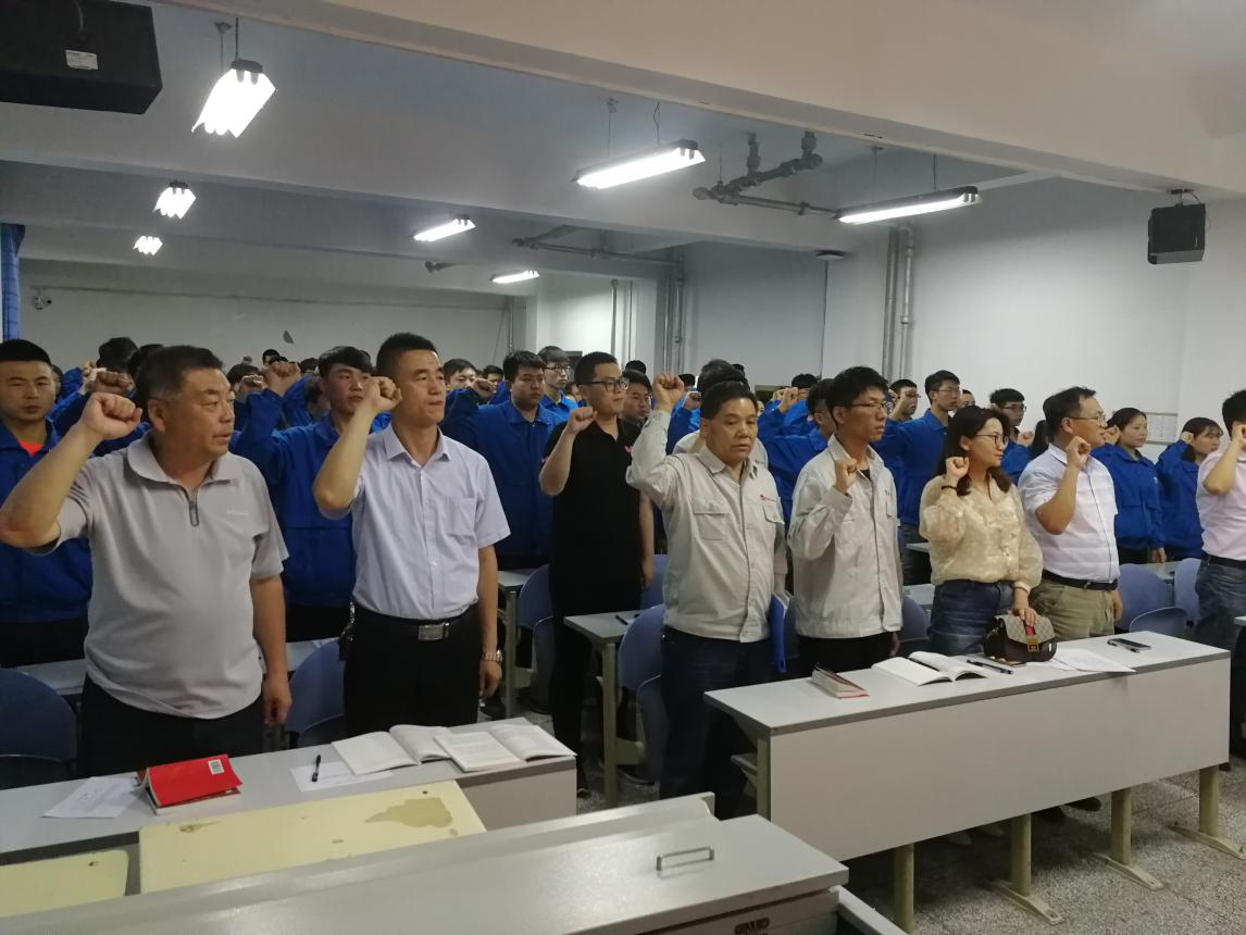 此次党员大会共有三项议程。一是党支部书记介绍52名预备党员一年来的考察情况,以全票通过转为正式党员。二是介绍45名新发展党员的考察情况,大会一致通过45名员工加入中共预备党员,新发展党员在党旗前进行了入党宣誓,老党员重温了入党誓词。三是党总支书记呼小洲组织学习了新党章,并为全体党员上了生动的党课教育。呼小洲讲到:1.虽然预备党员如期转正,但要走的路还很长,任重而道远,希望转正的正式党员和新发展的预备党员要认真学习《党章》,学习党的路线、方针、政策及十九大精神;2.教育党员不忘初心,方能始终;时刻保持认真的工作态度与学习态度,努力学习,继续学习,终身学习,不断提高自身能力,成为一名合格的共为党员。至此,党员大会圆满结束。