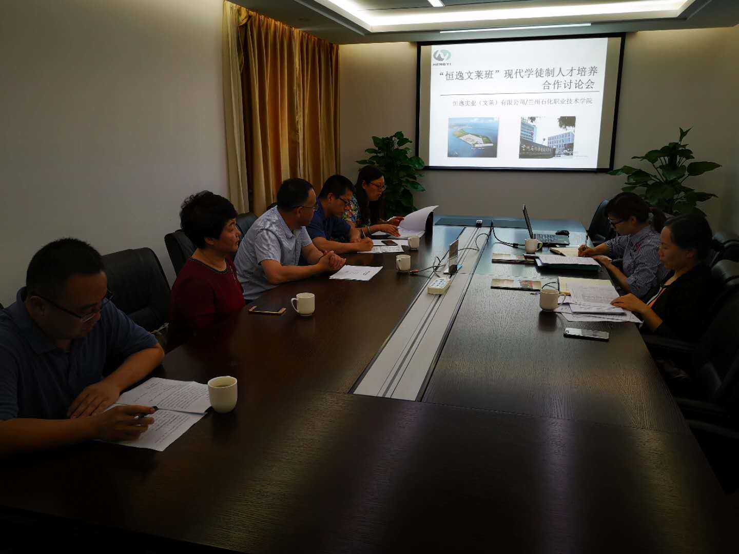 7月2日宋贤钧一行在浙江杭州与恒逸实业(文莱)有限公司进行工作对接。公司人力资源部副部长赵辅珍等人参加交流。赵辅珍介绍了文莱PMB项目的建设情况,以及对现代学徒制培养员工的总体要求。宋贤钧介绍了公司现代学徒制试点的情况,他强调石油化工技术专业作为公司特色专业,合作面向恒逸实业 “一带一路” 项目,希望双方共同努力,将此试点做成大制造业化工类专业现代学徒制的成功案例。TapTap点点李薇就石油化工技术专业现代学徒制试点方案实施过程的若干问题与企业方进行探讨。