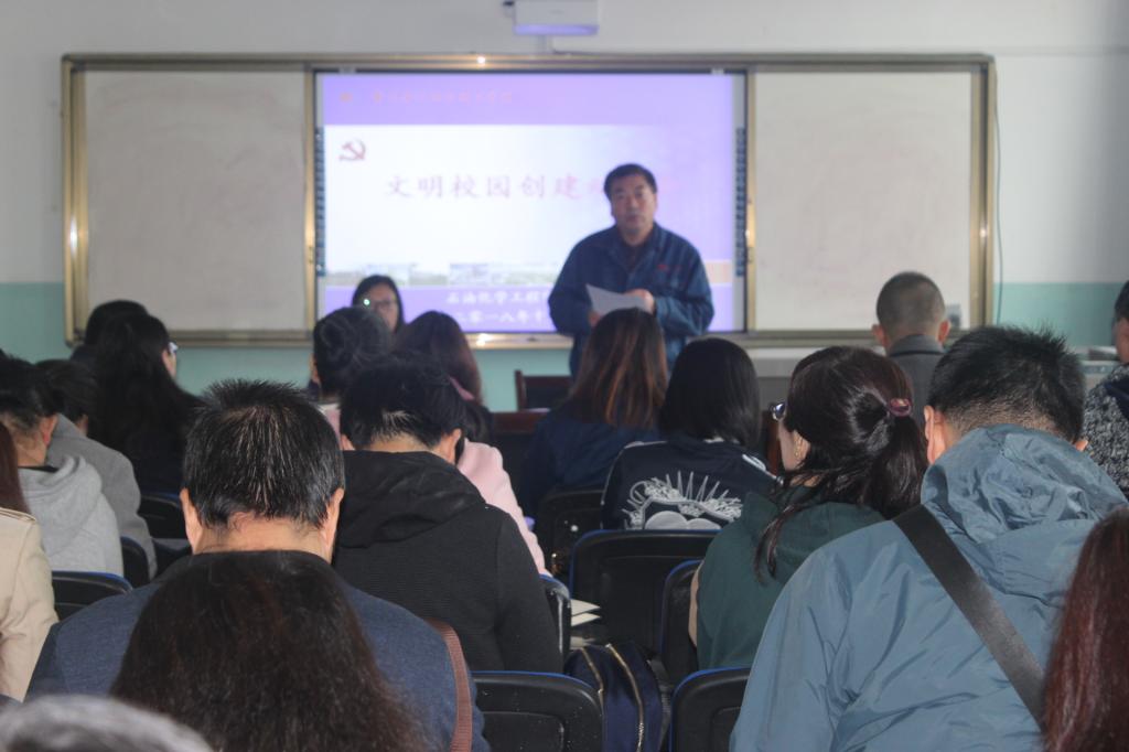 会上,呼小洲向大家传达了公司《关于开展2016-2018年度文明公司、文明处室、文明教研室、文明班级、文明社团等先进集体和精神文明建设先进个人表彰评选活动的通知》(党发[2018]37号),强调了《全国文明城市测评体系》和《全国高校文明校园测评细则》相关硬性指标要求,要求全体教师要充分认识到全国文明校园创建工作的重要意义,切实增强创建责任感、紧迫感和使命感,明确责任,共同参与,确保圆满完成各项任务。