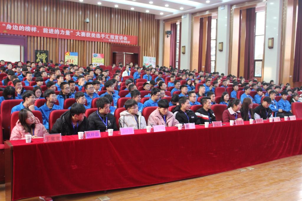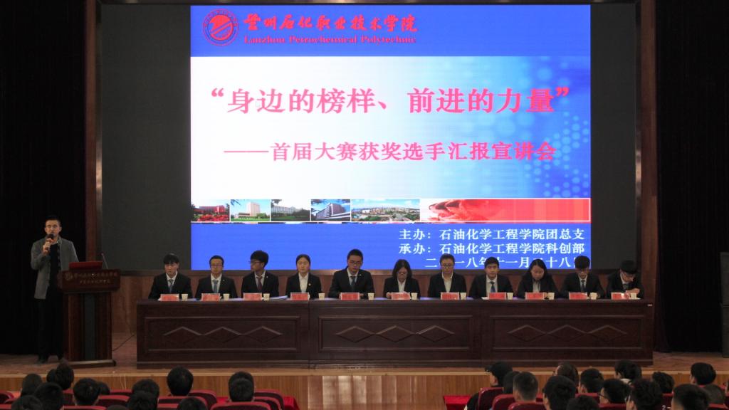 在本次活动中,主要由在石油化工生产技术大赛和甘肃省化学竞赛中各位获奖选手详细讲述了在参赛前的准备,每一次成功的背后,都有他们的汗水和智慧。在每次失败之后,他们都会总结知识点,使学习效率事半功倍。“所谓天才只不过掌握了知识的脉络,学会了将点线面结合”各位获奖选手如是说。他们在后面指出“危险是砥砺前行的警钟”,现实会告诉你,不努力就会被生活给踩在脚下,无需找什么借口;一无所有,就是拼的理由,他们将压力变为前进的动力,思想决定高度,态度决定一切。在本次宣讲会的最后,他们对父母、老师、同学等做出了最真挚的感谢,对同学们送出了美好的祝福。