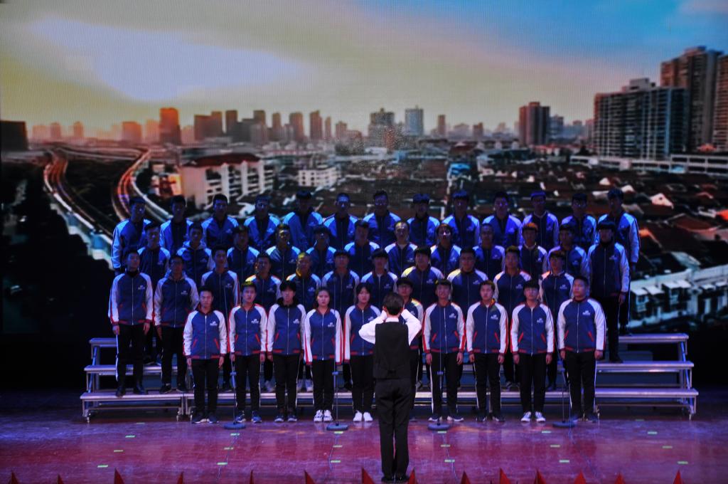 活动在主持人的开场词下拉开了帷幕,伴随着一阵阵掌声,选手们精心准备的节目为观众呈现了一场丰富的视听盛宴。首先合唱团的表演,点燃台下观众们的热情、活跃了氛围。接着各班以此登场,他们在舞台上,聚光灯下释放自我、展现自我,把握韵律,配合着PPT表达出对国家的爱意。台上的同学们热情洋溢、声音洪亮,指挥员手势准确、富有激情。他们用大气磅礴的歌声和旋律歌颂了中华民族自强不息、阔步向前的豪迈气概,唱出了新时代青年对党、对祖国的浓厚深情与热情讴歌,歌声催人奋进,气势振奋人心。其中,恒逸181带来的歌曲《走向复兴》将此次比赛推向了高潮,并夺得了此次比赛的桂冠。