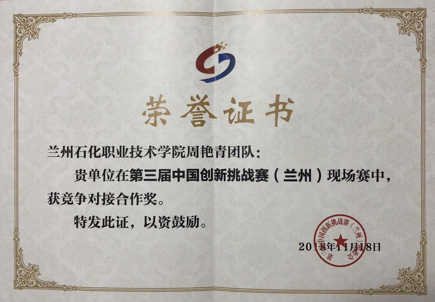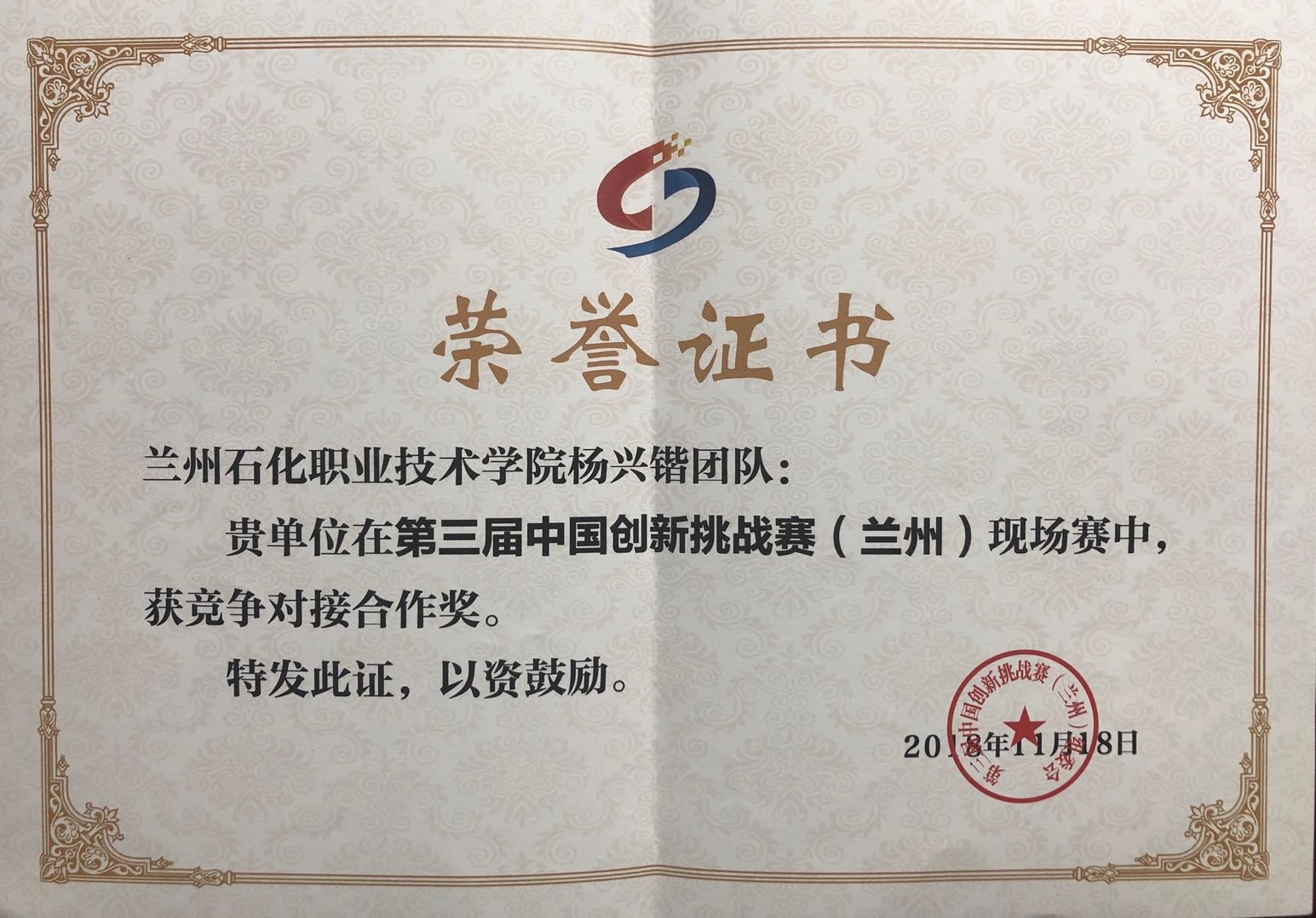 11月18日上午,“第三届中国创新挑战赛”在甘肃兰州举行。本届挑战赛经国家科技部指导,科技部火炬中心、兰州市人民政府、甘肃省科技厅承办,兰州市科技局组织,兰州生产力促进中心实施的国家级赛事。公司教师杨兴锴团队和周艳青团队以优异的成绩获竞争对接合作奖。