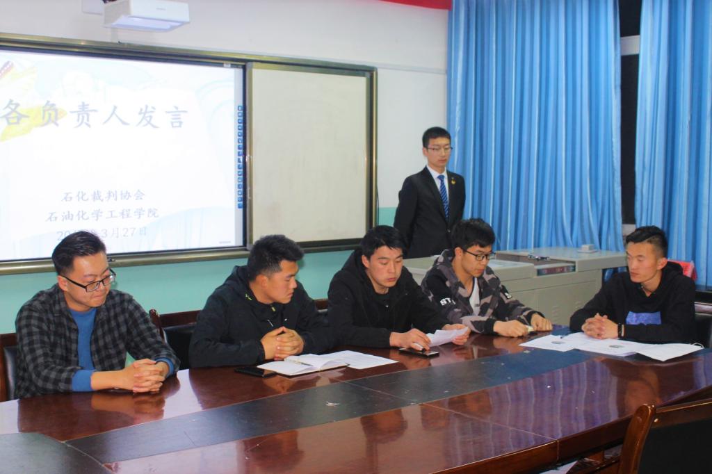 会议开始,首先体育部部长讲话,他强调本次协会由李胜泥老师和席满意老师负责各项活动的举行和培训,阐述了各个月份的相应活动,希望各成员积极参与;随后他讲述了石化裁判协会成立的背景与原因。紧接着,由各项运动的裁判负责人进行讲话,强调在活动中各个裁判要礼貌待人,公平公正的对待每场比赛。积极与检录处配合,不得延误比赛进程,如果有问题,及时向负责人说明,由负责人进行及时处理。之后,裁判协会成员说明各自心中的困惑,并由各项裁判负责人进行解答。最后由体育部部长王奇辉进行会议总结,预祝石化裁判协会发展壮大,越来越好。到此,本次会议圆满结束。