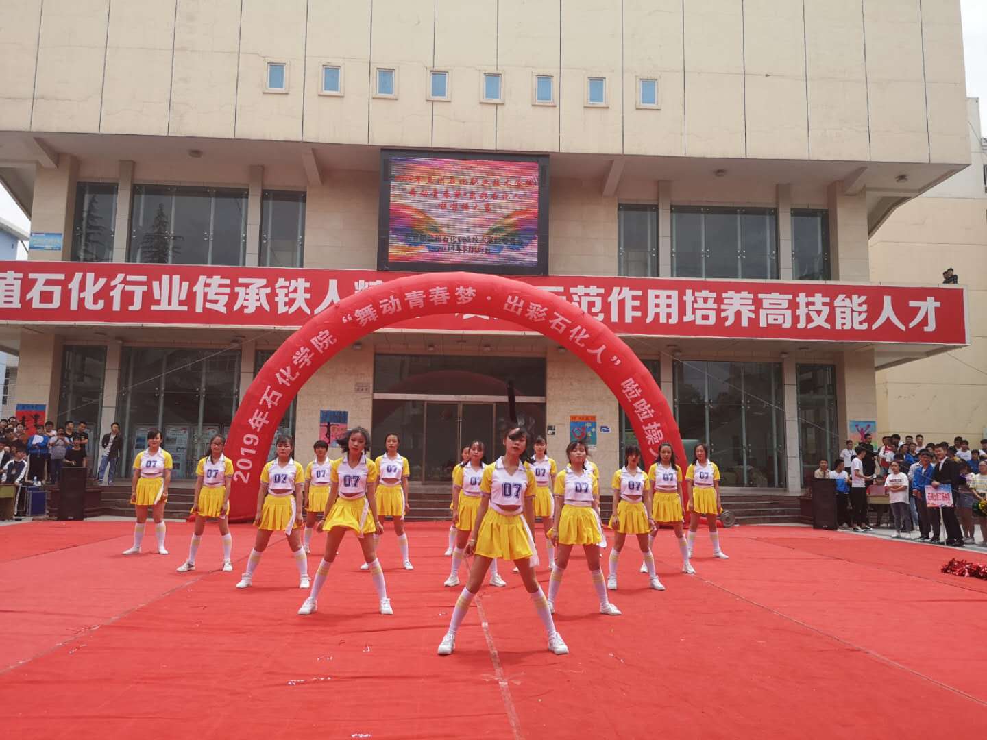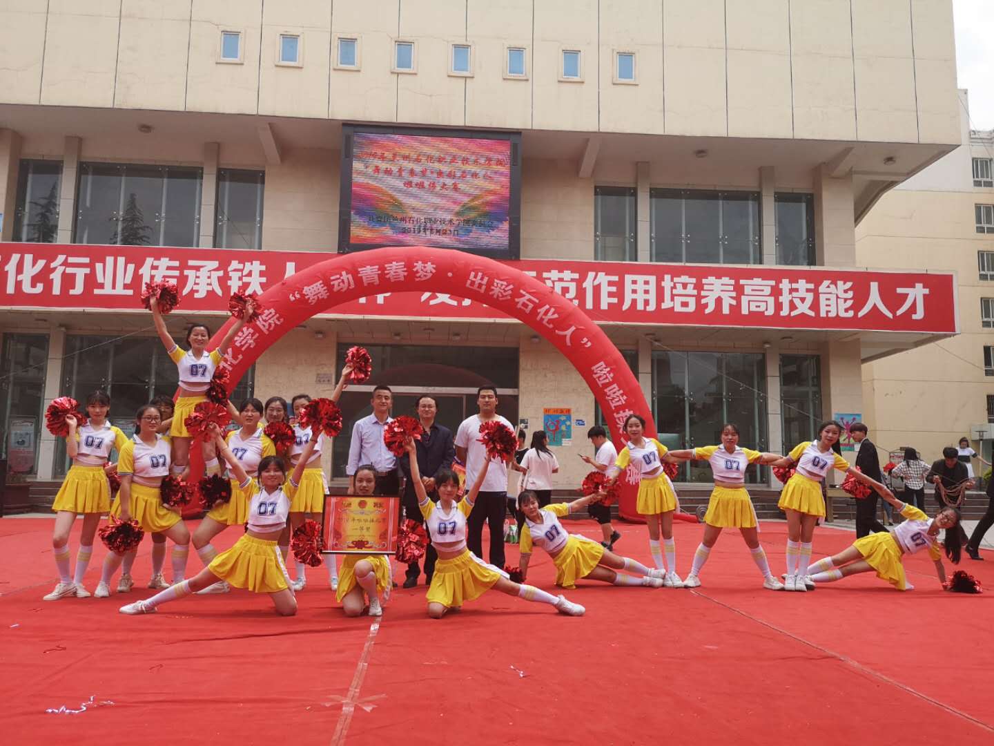 此次比赛共12个代表队参赛,参赛的各支队伍从整体构思到动作推敲都充分展现了同学们的智慧与创造力,队员们明快奔放的动作挥洒出青春的风采,新颖别致的造型展现了力与美的结合,严整而灵动的队列诠释了青春的激扬与奔放。每支参赛队伍别具一格精心编排的的队形、亮丽的服装、活力的身影、整齐的步伐、准确完成了啦啦操的技术特点,纷纷展示出兰州石化职业技术公司学子活力四射、昂扬向上的精神面貌。光鲜亮丽的背后,还有啦啦操队员们汗水的付出和团队信念的坚守,给现场的观众带来了一场精彩的视觉盛宴。最终公司用精湛的舞蹈震撼了全场观众,获得了热烈的掌声。经过1个多小时激烈的角逐,公司啦啦队获得了评委和观众的一致好评,最终获得此次比赛一等奖。