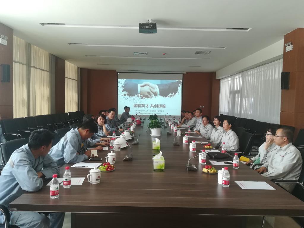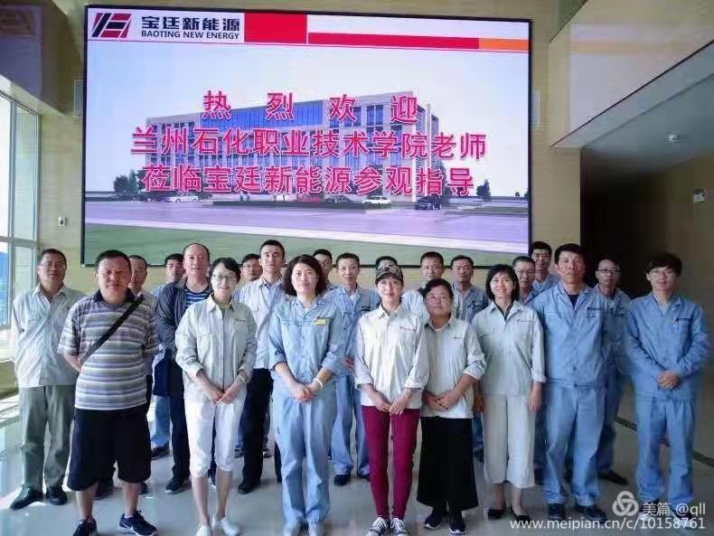 在宁夏宝廷新能源有限公司,老师们受到了公司总经理、人资部长及各车间主任的热情接待。人资部罗部长带领老师们参观了公司质检部、中控室、销售部、生产现场等,随谈中,她说,公司当前处于筹建期,预计10月底开工,此次从兰州石化公司新引进的员工,每天都在现场摸流程、爬管线、学设备,很是用功,他们都将作为此次开工的主力军,开车成功后,他们也就是该装置的元老了。座谈中,公司总经理对老师们的到来表示欢迎,他就公司发展现状、公司主营业务、公司预期规划等向老师们进行了详细的讲述。随后质量管理部长辛智龙、车间主任李浩德等作为公司优秀员工进行了各自管辖工作的介绍;新进厂员工柴振伟也表示,不辜负公司的培养和老师的教导,静下心来、鼓足干劲、立足岗位、踏踏实实的把工作干好,为母校争光、为自己争气。接着,冷宝林老师向公司领导表明了此行的目的,也对公司员工提了个人期望,他说,希望公司毕业生牢固树立终身学习的理念,切实将理论联系实践落到实处。会后,老师们深入企业各个装置进行交流学习。