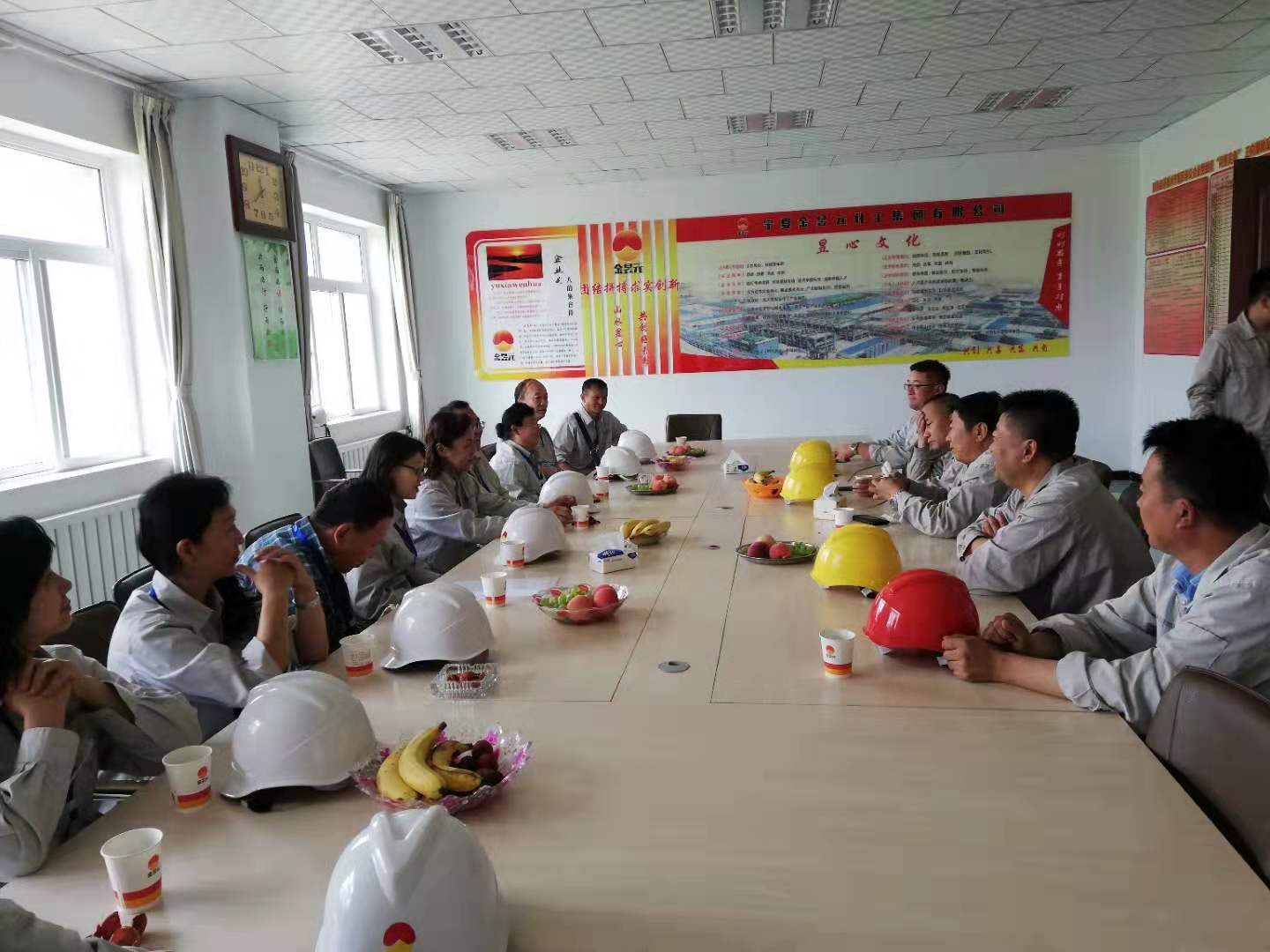 在宁夏金昱元化工集团有限公司,老师们受到了公司优秀员工暨现任公司董事长、总经理等的热情接待。座谈会上,公司总经理就公司近年来的发展历程、产业布局、员工培养、人才需求等向大家做了详细的讲述。他说,公司现有员工5000余人,尤以兰州石化公司的员工最优秀,这些员工的特点是吃苦耐劳、踏实肯专、立足岗位成才,多数已成为主操、班长、技术员、车间主任等中流砥柱的角色,这与公司的精准培养和老师们的悉心教育是分不开的,公司扩能升级后,我们还到贵校来招员工。交流中,冷宝林老师指出,我们此行目的就是为了深入企业锻炼学习企业的新设备、新技术、新工艺,将理论知识与实践技能深度融合,提升我们自身的实践能力,保障为员工讲的每一堂课都接地气,实现公司理论与企业技能的零对接,力争使员工一毕业即可上岗操作。会后,老师们深入企业各个装置进行了以生产设备、技术工艺为主的交流学习。