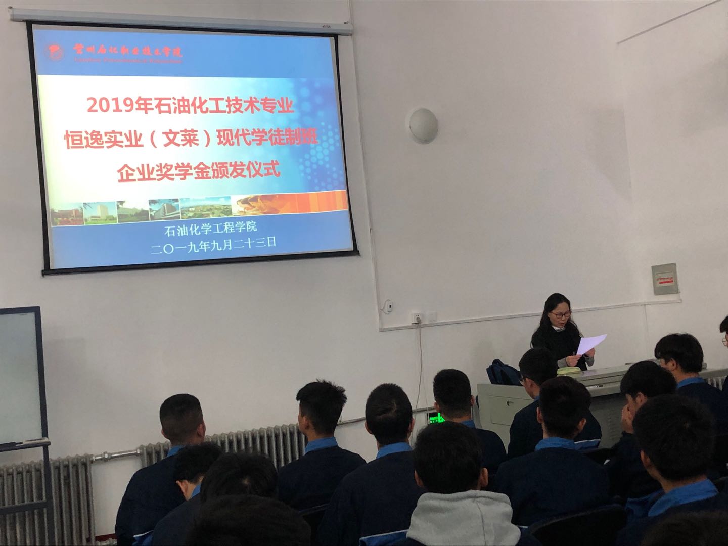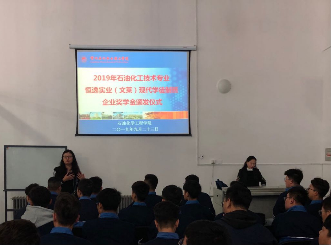 923日上午,“兰州石化职业技术公司·恒逸实业(文莱)有限公司现代学徒制企业文化宣讲暨企业奖学金颁发仪式”在第四工业中心实训基地举行。TapTap点点经理李薇、恒逸实业(文莱)有限公司人力资源部副部长赵辅珍一行两人出席本次会议并讲话,石化院相关负责人和教师,以及石油化工技术专业恒逸181和石油炼制技术专业恒逸191全体员工参加了本次会议。