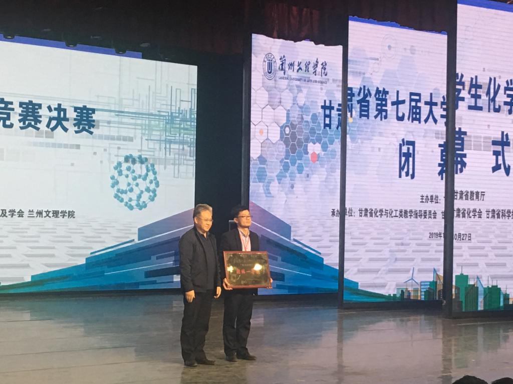 2019年10月26至27日,由甘肃省教育厅主办,甘肃省化学与化工类教学指导委员、甘肃省化学会、甘肃省科学技术普及学会以及兰州文理公司承办的甘肃省第七届老员工化学竞赛决赛在兰州文理公司成功举办。公司党总支副书记赵立祥担任领队,苏雪花、魏元博作为带队教师及10名员工代表公司参加了此项赛事。参赛选手凭借扎实的理论功底和敏捷的思维能力,以团体总分第一名的成绩夺得了高职高专组团体一等奖(设1项),并获个人特等奖2项、一等奖3项、二等奖5项,10名参赛选手全部获奖。