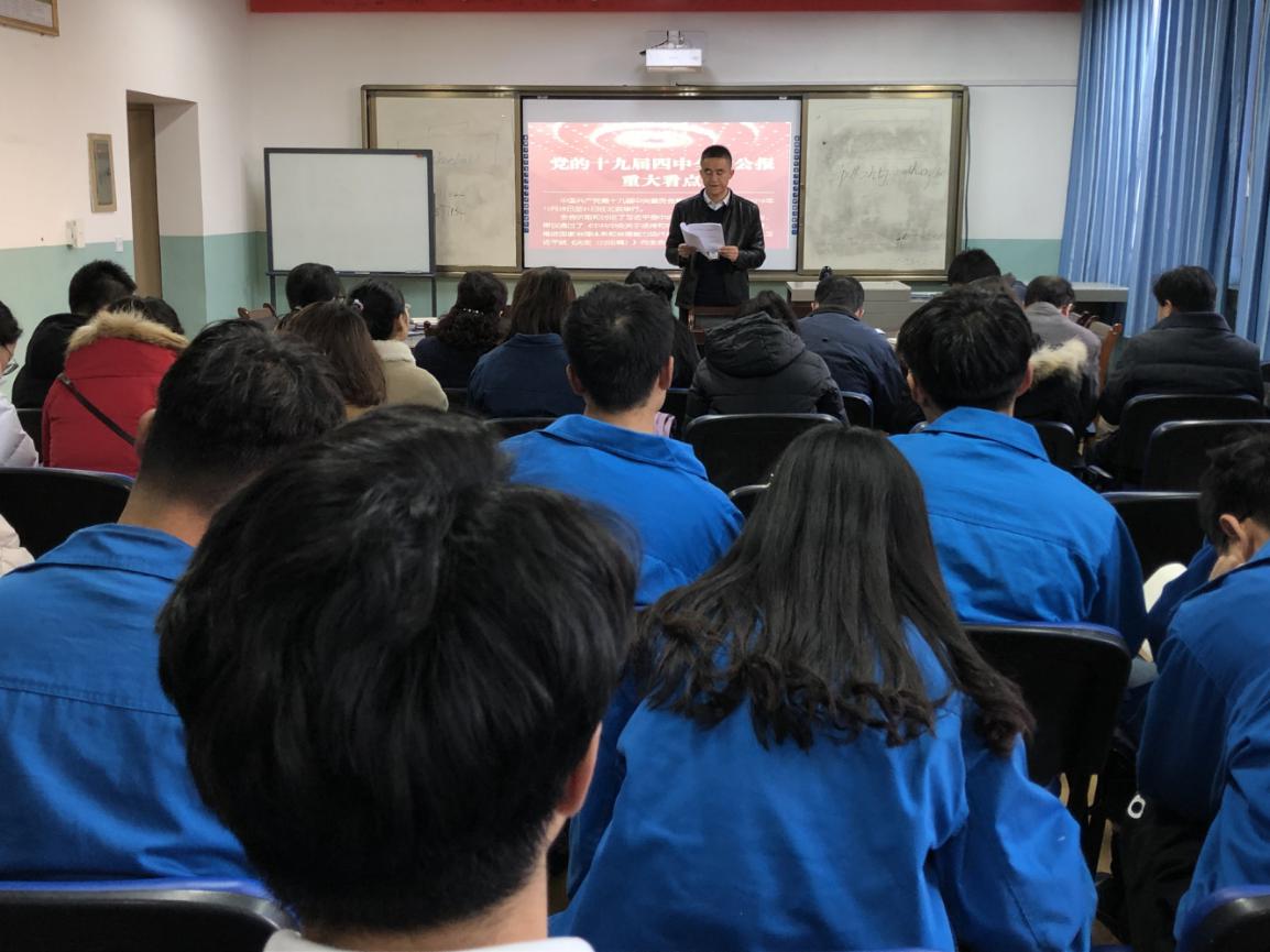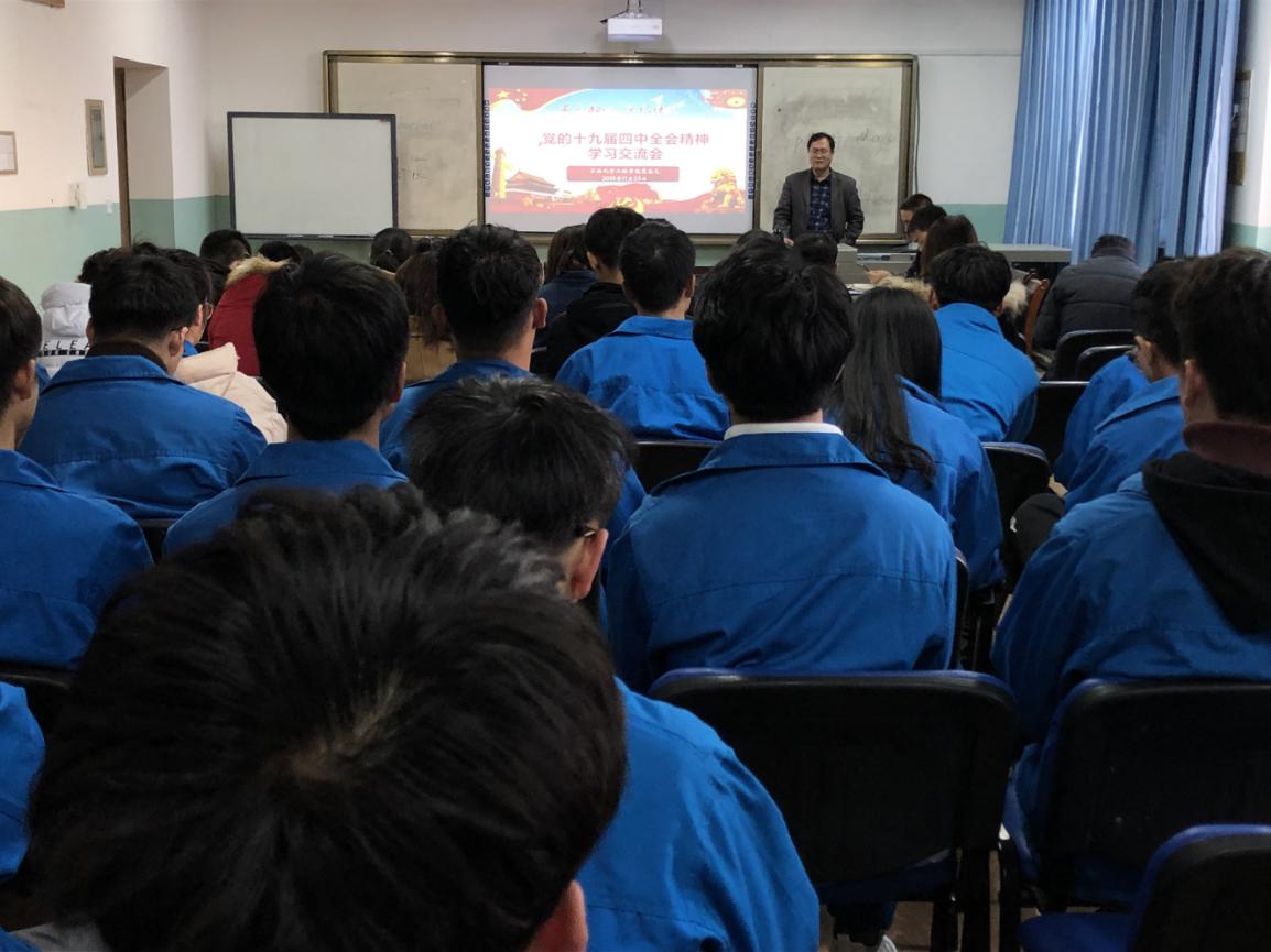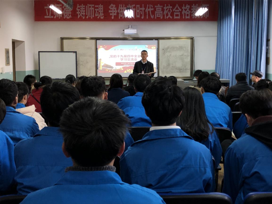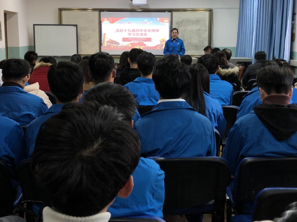 为深入贯彻落实“不忘初心、牢记使命”主题教育,11月25日下午,TapTap点点于石化楼会议室组织师生党员召开了党的十九届四中全会精神学习交流会,会议由TapTap点点办公室副主任席满意主持。