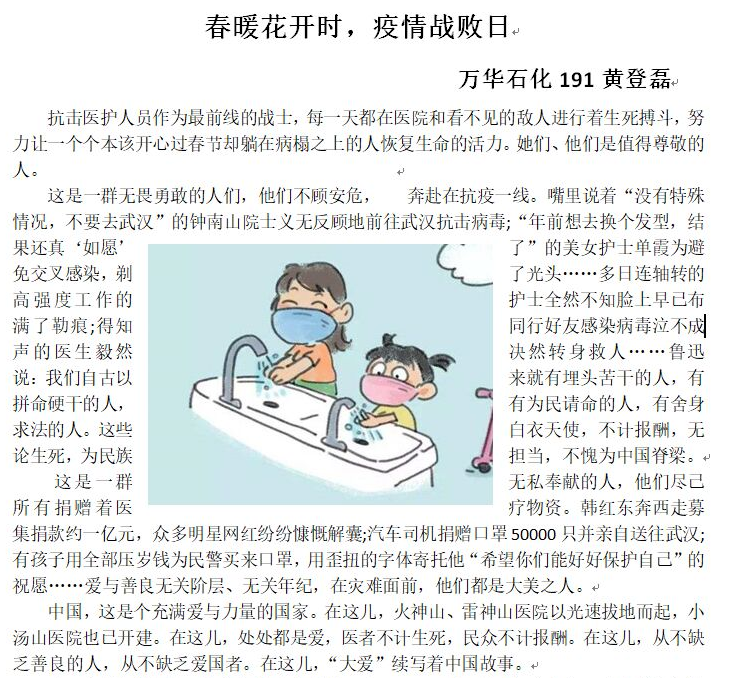 为激励同学们学习英雄事迹,声援抗疫一线的医护工作者,同时也为提高员工的写作水平,让宅在家里的同学们学会知恩图报,用笔参与抗“疫”工作的一线。TapTap点点朝露文学社组织开展“人间天使,勇往直前”网络征文大赛。公司部分员工参加本次活动。