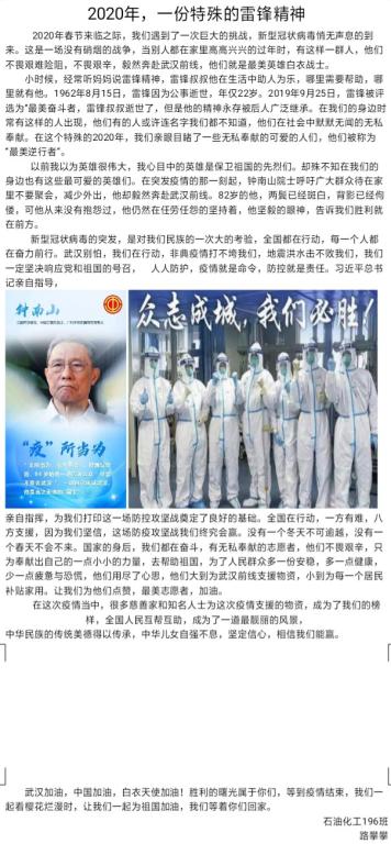 一篇篇作文都包含着深情。柳青东风暖,抗疫万众心,缅怀先烈志,网络祭英魂。在此清明时节来临之际,恰逢新冠肺炎疫情防控决战决胜的关键阶段,每一位参赛者都用优美的文字表达着对中华民族先烈的缅怀和对抗战在疫情一线工作人员的敬佩,他们用文字言明:“我们不会忘记那些数百年来为中华民族崛起而斗争的,曾把鲜血洒在人民解放道路上的英雄们。从“辛亥革命”到“南昌起义”,从“二万五千里长征”到“抗美援朝”再到如今的“新型肺炎疫情”,英烈们用自我的牺牲和奉献,奋战在前线,换来了人民的安居乐业,相信再过不久我们就可以摘下口罩,自由的呼吸着这片蓝天之下的空气,去看自己想看的风景和人。”