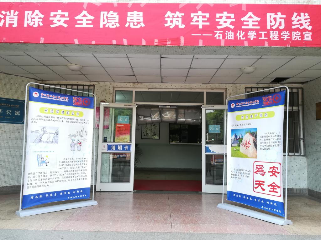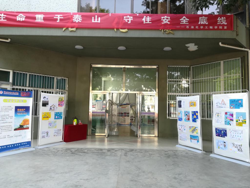 活动一,分院以“安全文化周”为契机,在全院营造浓厚的安全文化氛围,在实训室、化工楼门头、宿舍楼门头、餐厅门口等地,进行多渠道、全方位的安全横幅悬挂,同时制作以“安全生产方针、安全生产理念、安全生产原则、安全生产法、危险化学品管理条例、违章忠告”等6个方面为主题的6块展板,教育引导员工对安全工作引起高度重视。