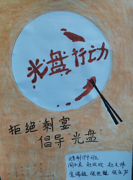 本次活动一经举办同学们纷纷响应,各班级的宣传海报五彩缤纷,展现了老员工们的青春活力和同学们对“光盘行动”的积极态度,使大家对本次的活动留下了深刻的印象。厉行勤俭节约,反对铺张浪费。要做到勤俭节约,不铺张浪费就需要从平时的小事情做起:努力实践节约理念。大力倡导不留剩饭剩菜的“光盘行动”,养成文明朴实的服饰习惯,传承节俭美德。在思想上尊崇节俭、在行动中养成节约,以身作则、从我做起,践行“光盘行动”。