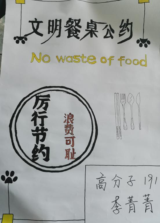 本次活动一经举办同学们纷纷响应,各班级的宣传海报五彩缤纷,展现了老员工们的青春活力和同学们对“光盘行动”的积极态度,使大家对本次的活动留下了深刻的印象。厉行勤俭节约,反对铺张浪费。要做到勤俭节约,不铺张浪费就需要从平时的小事情做起:努力实践节约理念。大力倡导不留剩饭剩菜的“光盘行动”,养成文明朴实的服饰习惯,传承节俭美德。在思想上尊崇节俭、在行动中养成节约,以身作则、从我做起,践行“光盘行动”。
