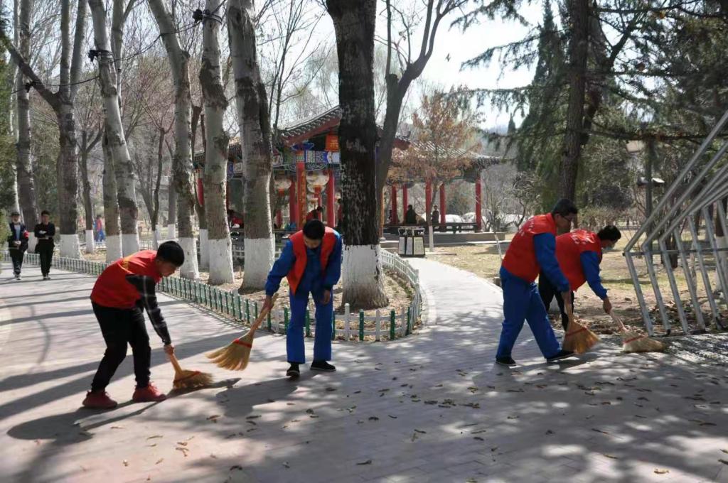 踏着春天的气息,迈着轻盈的脚步,同学们有组织有纪律地来到金城公园进行志愿清扫活动,活动伊始,由爱溢青年志愿者协会会长根据参人数及清扫范围进行了详细的分工,接着强调了活动注意事项,明确了活动的目的及意义,让志愿者携带着爱心、承载着希望去完成每一扫帚、每一抹布。员工相互配合,甚是默契,整个清理打扫过程做到了快速、安全、有序。“汗水与尘土齐飞”,同学们脸上却洋溢着灿烂的笑容,这是因为他们感受到了服务的快乐,体会到了奉献的永恒和伟大。经过同学们的辛勤劳动,公园角落变得干净、整洁,春意盎然。