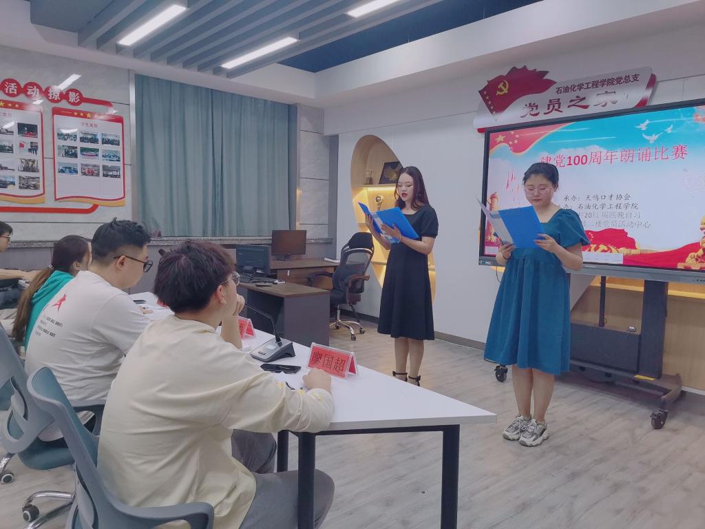伴随着慷慨激昂的背景音乐,朗诵比赛正式开始。比赛现场气氛热烈,选手们各个精神饱满、落落大方,或慷慨激昂、或娓娓道来,声情并茂地诠释着对党和国家的热爱。《党在我心中》、《砥砺前行,永葆初心》、《走进七月流火的季节》、《百年党史铸芳华》、《党的赞歌》……一首首满怀豪情的诗歌,展示了新时代石化学子不畏艰难、勇往直前的万丈豪情。场上精彩不断,场下掌声不绝,比赛最后,评委现场打分评选获奖选手并给予奖励。