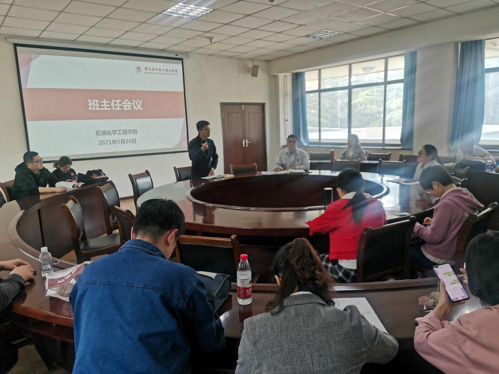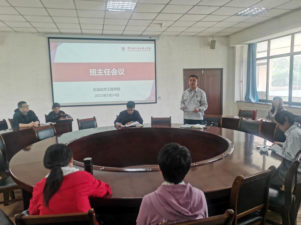 5月24日下午,公司召开辅导员班主任工作例会,公司领导赵立祥、席满意以及全体辅导员、班主任参加会议。