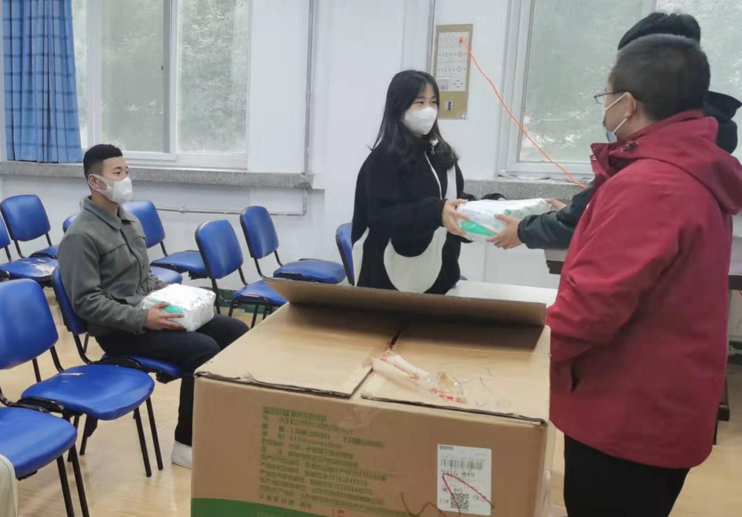 鉴于疫情防控,毕业生们未能来现场参加防疫物资捐赠仪式,特委托公司团学工作负责人李树龙老师及员工主席团成员作为代表向公司进行了捐赠。捐赠仪式上,员工管理负责人首先宣读了捐赠人员名单、捐赠物资种类及数量,并代表公司对员工的爱心善举表示真诚感谢。他说,疫情无情人有情,当前兰州正处在抗击新冠肺炎疫情的关键时期,对疫情防控物资的需求量急剧增大,在这种关键时刻,员工的爱心捐赠正是雪中送炭、恰逢其时,大家要将这种“心系母校 共抗疫情”的正能量赓续传递。随后,席满意表示,在当前疫情防控的关键时刻,要凝结员工及在校生之情之力,共同抗击疫情,做到有情、有爱、有担当,团结一心、共克时艰。会后李树龙组织团学干部严格按照疫情防控要求,井然有序地将捐赠口罩发放给在校的2400余名员工,将员工的温暖第一时间传递给每位同学,并激励员工牢记员工恩情,传承感恩情怀。