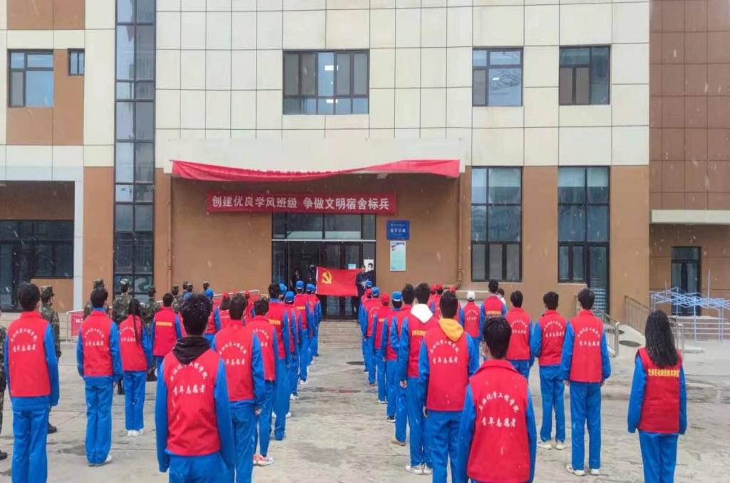 成立“入党积极分子抗疫突击队”。推选20级入党积极分子58人,成立“入党积极分子抗击疫情突击队”,设立3个“党员先锋岗位”。“党员帮扶岗”:帮助隔离留观员工打饭,送开水,为隔离留观员工送去温暧。检查修复供暧设施,调试供暧阀门,排水排气,保证了员工宿舍暧气热量,给员工宿舍送去了温暧。成立“员工健康岗”,协助辅导员对“疫情”期间员工封闭式管理下心理辅导减压,组织员工参加“疫情”期间开展的各项抗疫活动,让员工热情参与活动,快乐校园生活。成立“校园巡查岗”,组织“疫情”期间校园巡查,督促员工校园戴口罩,疏散员工不扎堆聚集,引导员工分散就餐不堂食。
