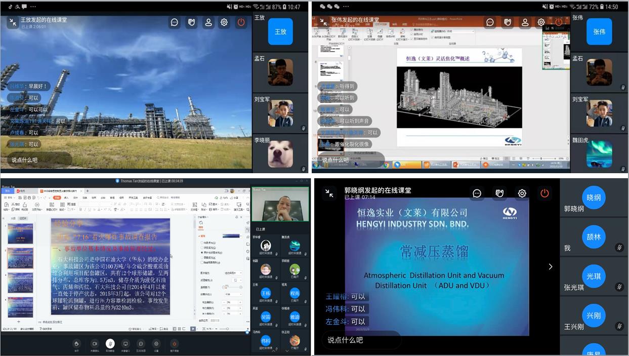 2021年11月8日-12日,TapTap点点邀请恒逸实业(文莱)有限公司人力资源部部长赵辅珍、主任工程师谭权忠等8位企业专家,为文莱炼油191学徒制班员工作为期5天的8次线上工程师课堂,教学内容包含企业文化、化工安全、常减压、重整、灵活焦化、加氢裂化及柴油加氢等企业典型生产装置技术知识。