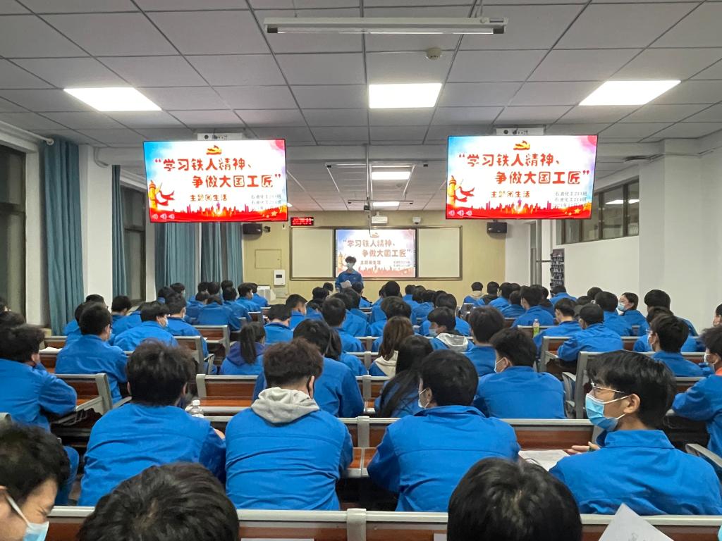 活动伊始,同学们身着工装,佩戴团徽,齐唱《中国共青团团歌》。随后,在各班级负责人的组织下了解本次主题团日活动的意义,并深入领会“学习铁人精神争做大国工匠”的深刻内涵。各班级通过演讲、朗诵、歌唱等多种方式阐述了自己对铁人精神理解。同学们纷纷表示,铁人的一生是战斗的一生,创造的一生,光辉的一生,他用终生实践为我们树立了做人的楷模、学习的榜样、廉洁的表率,不仅为社会创造了巨大的物质财富,还给我们留下了宝贵的精神财富-铁人精神。新时代的我们要弘扬铁人精神,谱写时代新篇。