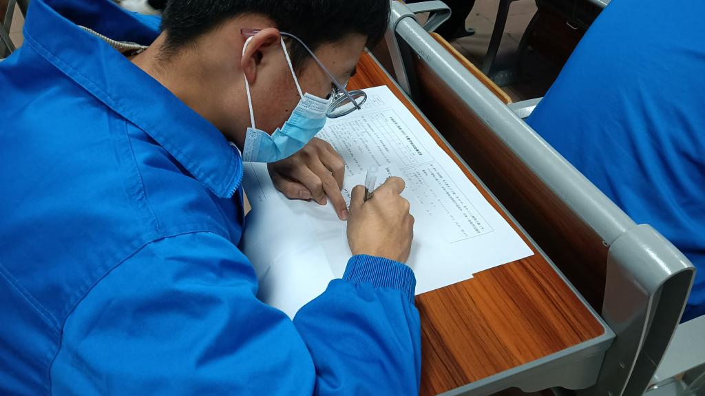 活动开始前,参赛员工身着工装,佩戴团徽,有序入场就坐。随后组织人员宣布竞赛规则,严明考场纪律。本次竞赛采用线下答题,竞赛项目设置单选题、填空题、应用题三种题型。参赛选手充分准备,冷静分析,沉着应试,力争上游。参赛选手严格遵守考场纪律,监考人员认真履行工作职责,整个考试过程严谨、有序、规范。