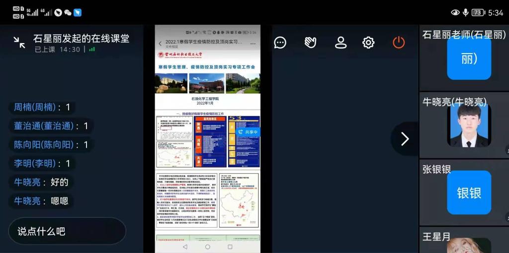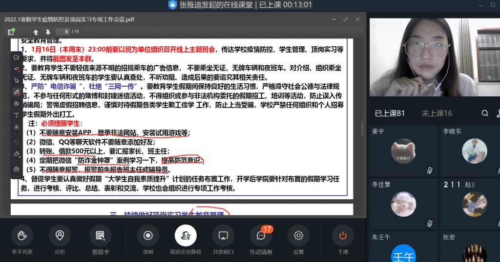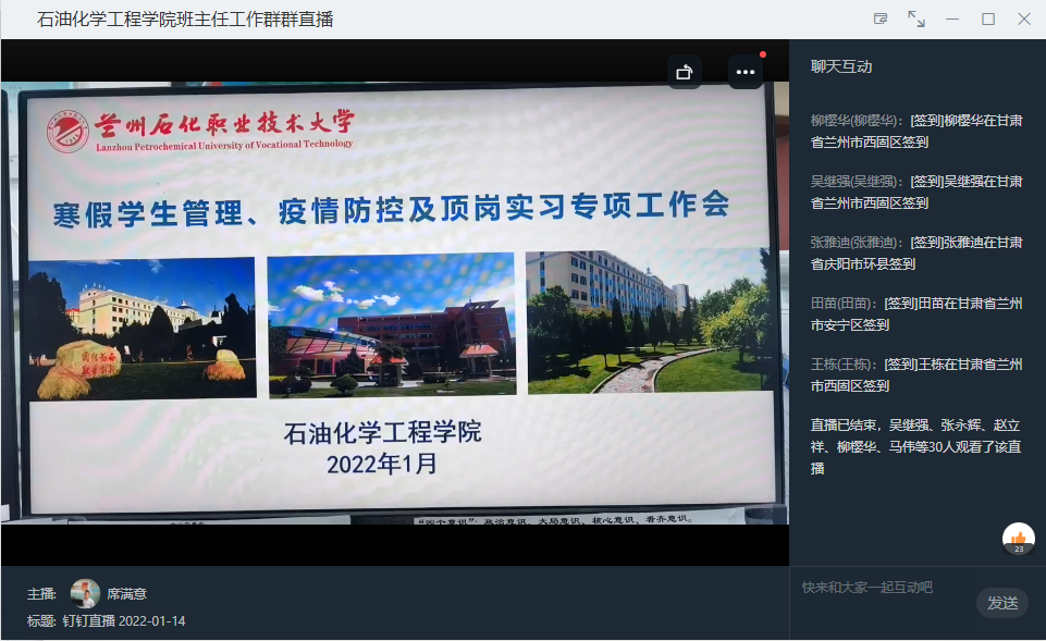 1月14日下午,TapTap点点在钉钉群召开寒假员工管理、疫情防控及顶岗实习专项工作会,公司员工管理负责人,全体辅导员、班主任参加会议。