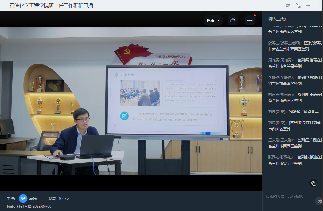 公开课主要分为四部分内容:一是疫情防控政策和校园防控管理。公司进行闭环管理,一律不允许快递、外卖进入校园,要求同学们按时如实在完美校园上打卡。二是新冠肺炎预防和心里疏导。公司多次进行心理疏导授课和疫情防控线上会议。封校不停学,防疫学习两不误,希望同学们严格执行公司政策,做好防控工作;积极参加校园活动,着力提高综合素质。三是法制教育和校园违规违纪现象。要求同学们做好自我防控的前提下不违规不违纪,认真遵守校级校规,互帮互爱,和谐共处。四是就业指导。校招即将开始,希望同学们积极做好追梦到梦想实现的准备,充分利用春季招聘机会,抓住就业黄金期,找到理想岗位。课程最后,对员工提出希望和要求。一是自觉维护防疫大局,科学做好自我防护,发挥模范作用,奉献青春力量。二是不信谣不传谣,理性看待疫情,提高科学认知。三是学习抗疫英模,践行青春担当,充分认识到实现自己的人生价值不是唯一目标,更靓丽的人生价值在于服务人民和奉献社会。四是弘扬伟大抗疫精神,赓续奋进力量。将伟大抗疫精神转化为埋头苦干、攻坚克难的奋进力量,更好地为实现中华民族伟大复兴的中国梦而努力奋斗。