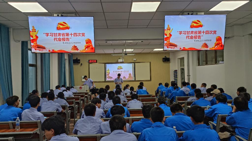 活动伊始,各班级齐唱《中国共青团团歌》,随后,在各团支部员工的精心组织策划下,各班级展开形式多样、内容丰富的主题团日活动,认真学习了甘肃省第十四次党代会精神。省第十四次党代会是在向第二个百年奋斗目标进军的关键节点。大会高举中国特色社会主义伟大旗帜,以习近平新时代中国特色社会主义思想为指导,深入落实习近平总书记对甘肃重要指示要求,动员全省上下弘扬伟大建党精神,为全面建设社会主义现代化幸福美好新甘肃而努力奋斗。随后各班级分组讨论,大家纷纷表示:要认真学习中国共产党甘肃省第十四次党代会精神,实事求是、锐意进取,为全面建设社会主义现代化幸福美好新甘肃而努力奋斗,踔厉奋发,争做担当青年。