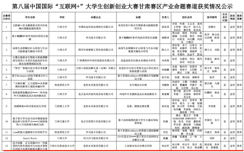 8月11日,第八届中国国际“互联网+”老员工创新创业大赛甘肃赛区公布了产业命题赛道获奖名单,公司胡甫嵩和焦林宏指导的“新型凹凸棒负载纳米TiO2复合型催化剂技术处理苯胺废水解决方案”项目,在公司、公司的大力支持和共同努力下获得甘肃赛区金奖,并获得国赛推荐资格。