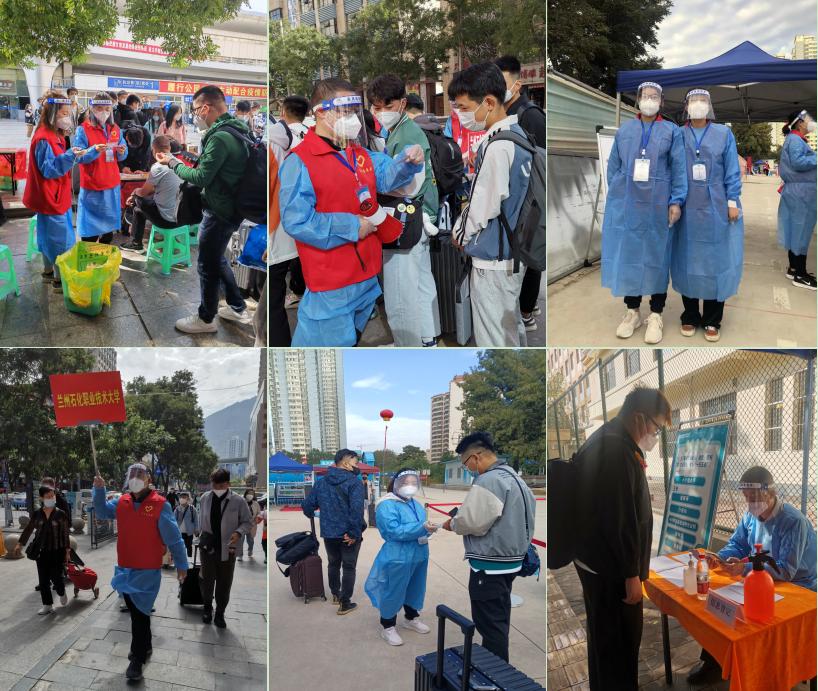 “各位同学请到这里来集合,请出示您的健康码、行程卡、核酸报告、身份证,请到这里排队做抗原检测,请到这里排队做核酸,我来帮你搬运行李,做完检测的同学请上大巴车......”守候在车站接站点和城市运动公园集合点内的教师志愿者主动为返校学生解决着各类问题。他们作为返校员工报到环节中重要的齿轮和润滑剂,细致周到的服务使疫情防控常态化下的返校工作变得更为规范顺畅,同时,也让每位返校员工卸下了奔波的辛苦,感受到了兰州石化职业技术大学的温暖。
