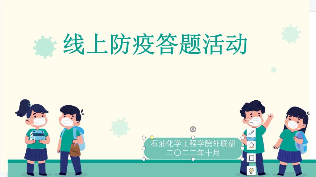 本次竞答活动题型多样,覆盖面广,主要有健康防疫知识普及、全民健身、心理健康、慢性病预防控制、中医药健康促进等内容,汇集近50道题目及数十篇科普文章,团学干部带头表率、新老生互动参与,达到“普及防疫知识、提升防疫素养”的目的,唱响深入实施健康防疫行动、全面推进“喜迎二十大、防疫享健康”的主旋律。