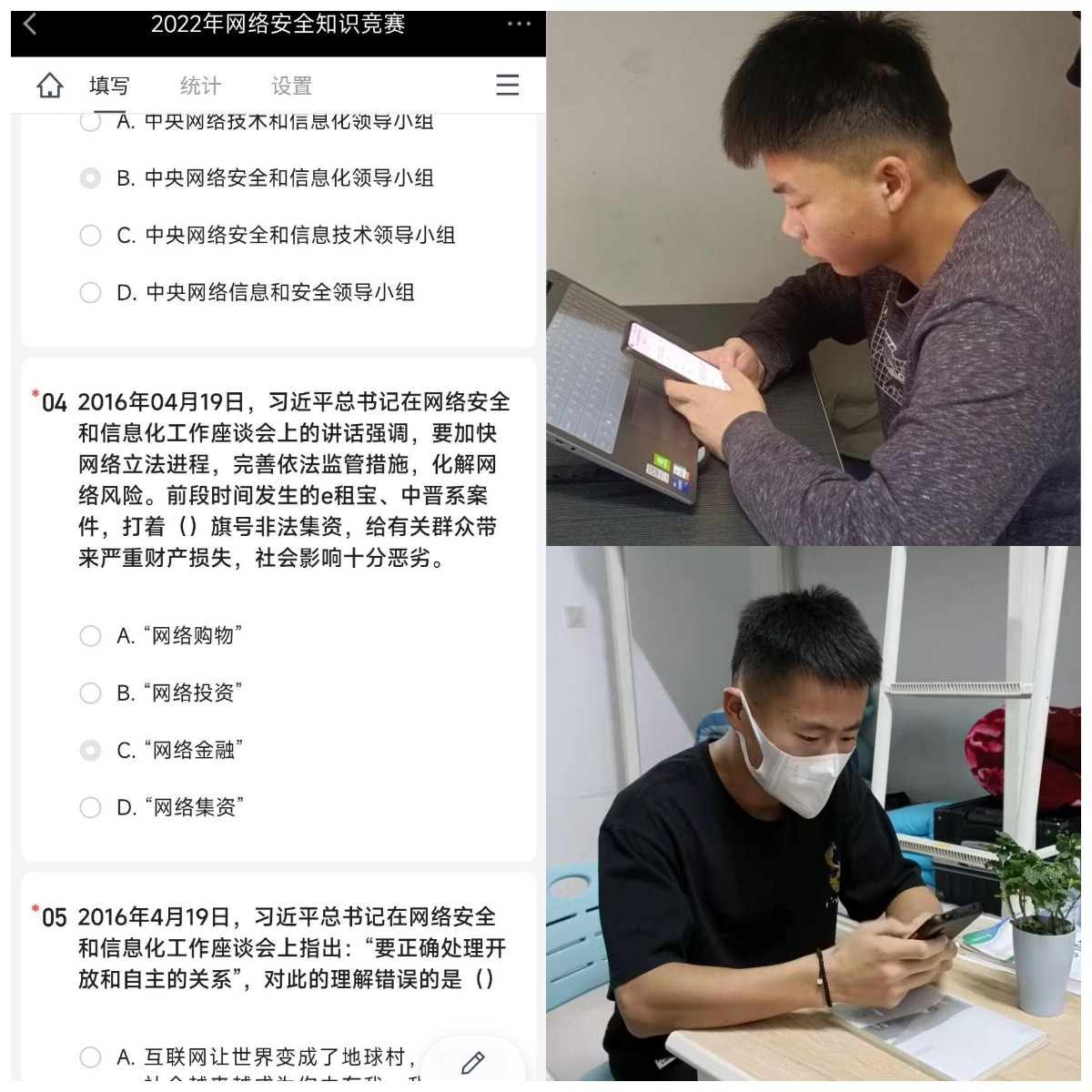 在喜迎党的二十大胜利召开之际,为进一步宣传普及网络安全相关法律法规,着重提升新生网络安全防护、严防电信诈骗的意识。10月12日,公司开展网络安全知识竞赛活动,以“知识竞赛”激发学习力量,在全院范围内掀起学习新热潮,引领安全防护新风尚。