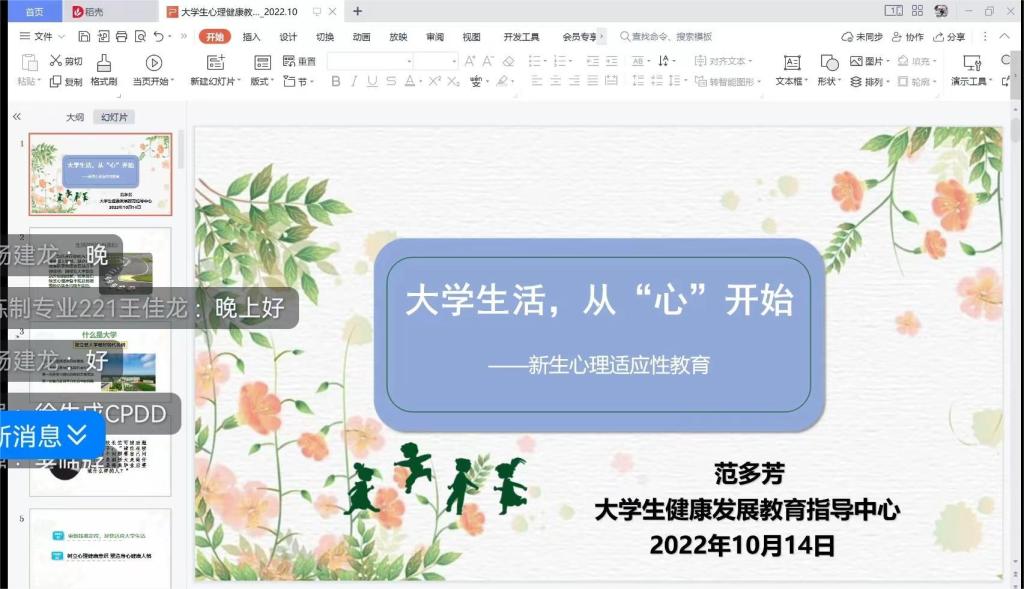 为进一步推动老员工心理健康工作深入开展,提高大学新生对心理健康的重视程度,帮助2022级新生尽快适应老员工活,10月14日晚上,TapTap点点特邀马院老员工心理中心范多芳老师进行新生心理适应性教育讲座,公司2022级全体新生参加。为配合公司疫情防控工作,本次心理健康讲座采用线上直播的方式。