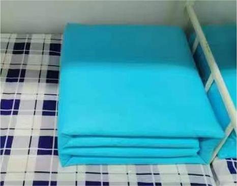 一床被子,铺平压实,横向三折;两端各取两拃长,双掌合力出槽痕;翻转轻扣,折面合一;臂压指勾,修得端角齐整;反复整理,终得这“豆腐块”四四方方。比赛开始,随着一声“开始”的号令,同学们争分夺秒,使出浑身解数,翻叠、折角、捏线,不放过每一个细节,不一会儿,一个个方正的“豆腐块”呈现在我们面前。把被子修成“豆腐块”,方寸之间,丈量的是规则尺度、严谨作风;平竖之上,展现的是细致入微、务实力行。