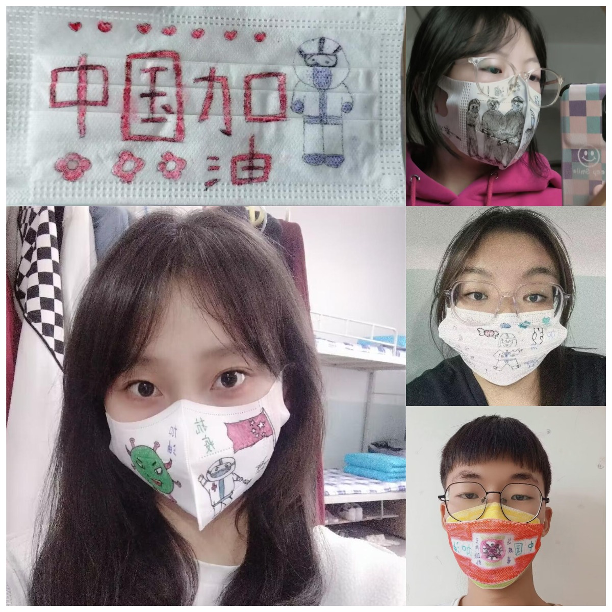 活动过程中,同学们大胆创新进行口罩的设计、绘画与印制,精心制作出独一无二的“微笑口罩”。石化学子以多种形式助力抗疫,一句句祝福、一幅幅作品寄托着同学们的美好祝愿,体现了抗疫必胜的信心与决心。依据口罩设计的技术含量、寓意内涵、美观程度等评判标准,评选出了本次活动的优秀作品,并通过线上渠道展示。