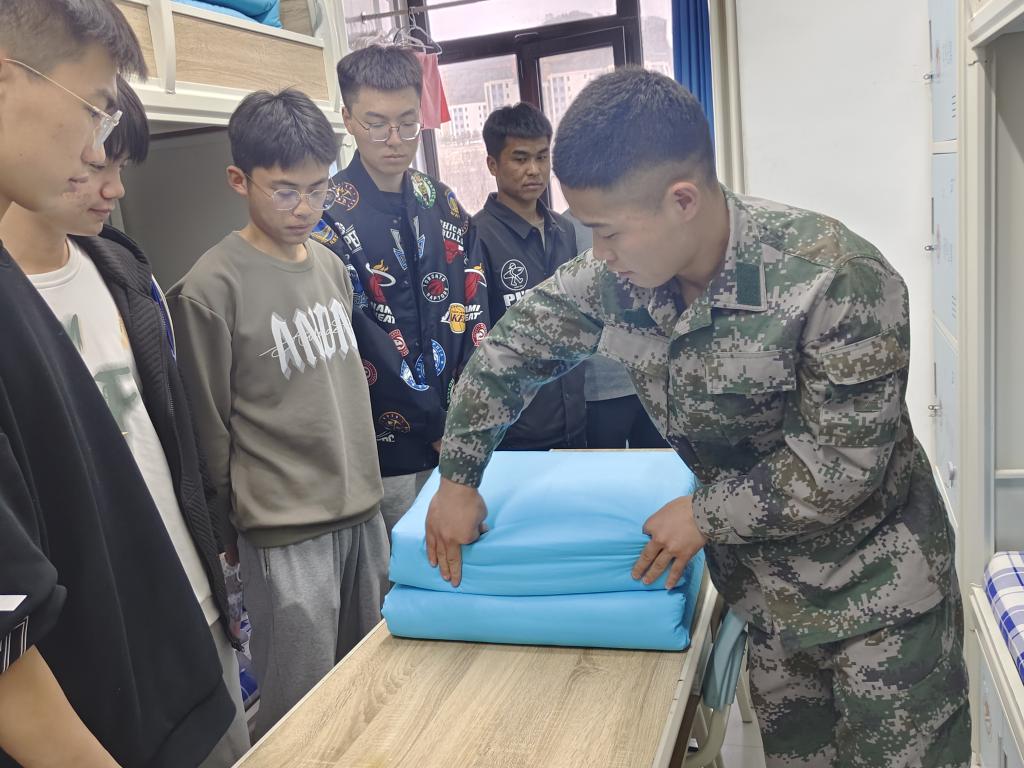 活动伊始,公司召开退伍老员工日常行为养成专项会议,鼓励同学们要继续保持部队优良传统和军人优良作风,在做好自我管理的同时,发挥示范引领作用,积极创建良好的宿舍生活环境。退伍老员工与班级“结对子”,入班级、进宿舍,耐心讲解叠军被的要领和技巧,并向员工展示叠军被的流程与需要注意的细节,对员工提出的问题给与精确解答,以确保所有同学看的懂、学得会。随后,退伍老员工对各宿舍长开展内务培训,现场展示叠被技巧和内务整理注意事项,帮助22级员工尽快适应宿舍的规范化管理,也促使员工在日常生活中养成良好的内务卫生习惯。
