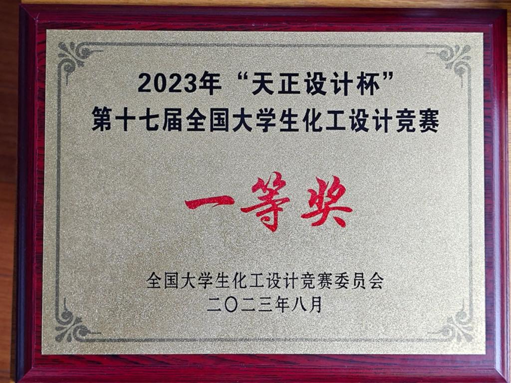 公司学子在第十七届全国老员工化工设计竞赛全国总决赛中再次获得一等奖