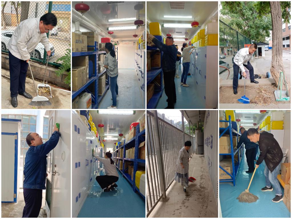 为做好这次大扫除,公司办公室制定详细分工、提供劳动工具保障,30多名教师与员工直奔现场按分工区域及职责划分共同劳动。到指定区域,大家情绪高昂,撸起袖子,充分发扬“不怕脏,不怕累”的精神 ,有人清除枯树叶,有人用斗车清运垃圾,有人搬走试剂柜周围堆放的杂物,有人擦拭试剂柜、宣传橱窗和栏杆等。全体人员齐心协力,用心清除每一处卫生死角,苦干两个小时,危化品中转柜、实训基地公共区域和校园公共区域面貌焕然一新。