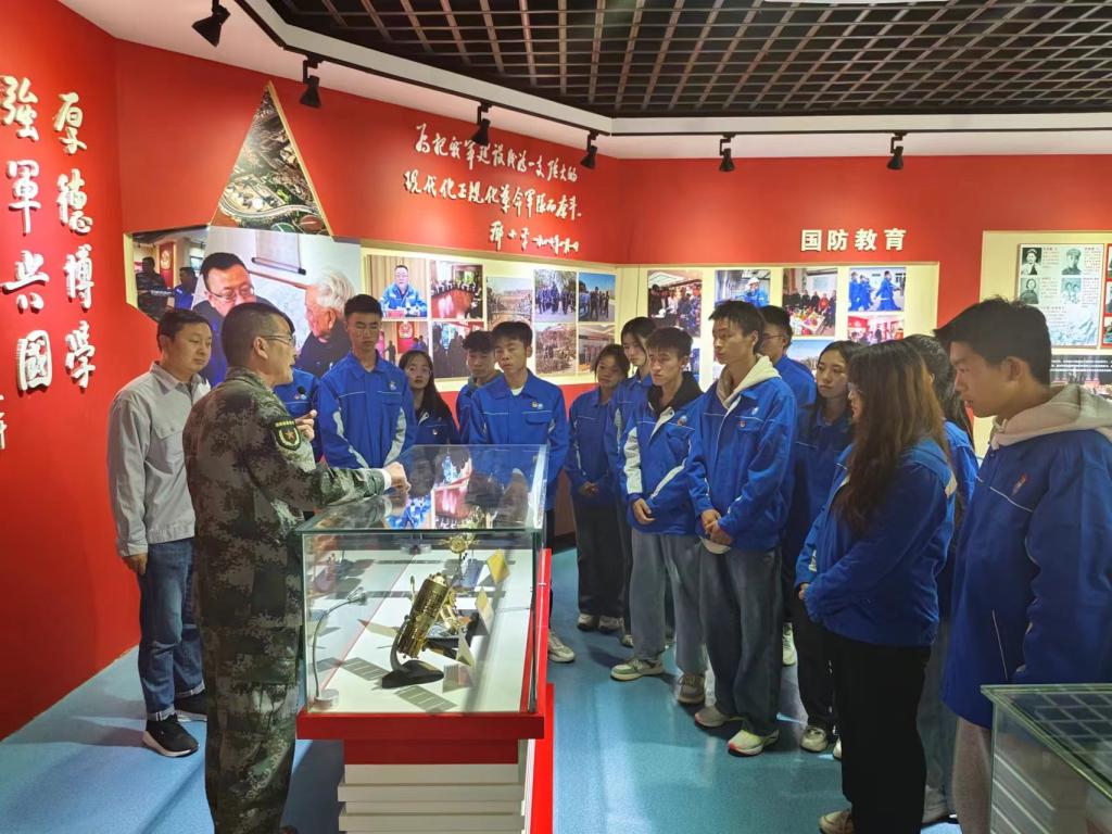 在国防教育展厅,一件件实物、一篇篇手稿、一幅幅照片仿佛将历史再次呈现在我们眼前,让同学们直观的感受了昔日战火纷飞的情形,也从内心深处领悟到当时共产党人保家卫国的雄心壮志,树立了爱国主义情怀。同学们近距离参观了国产航母山东舰、094型核舰艇和99式主战坦克等武器装备模型,大家都非常新奇,兴致勃勃听取讲解员的介绍,更有不少老员工现场积极提问,了解国防装备相关知识。