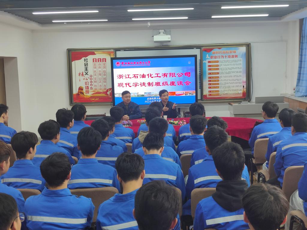 浙江石油化工有限公司乙烯化工事业部总经理陈国刚,介绍了企业的现状、地理位置和发展前景。通过浙石化负责人讲述,了解到该公司是一家由民营控股、国营参股的混合所有制企业,是中国(浙江)自由贸易试验区打造油品全产业链,落实“三基地一中心”发展战略的重要依托工程,肩负着推动区域经济发展、优化全国石化产业布局的职责和使命。随后同学们提到实习期间和转正以后的待遇以及到浙石化后续的发展问题,浙石化负责人都给予逐个答疑。企业负责人和辅导员鼓励同学们在校期间好好学习专业知识和技能,只有学好专业知识,强化专业技能,才能在化工企业展现石化学子的风采,才能成为大国工匠。