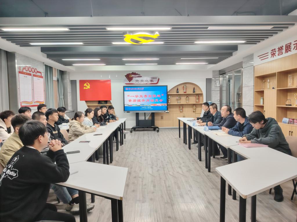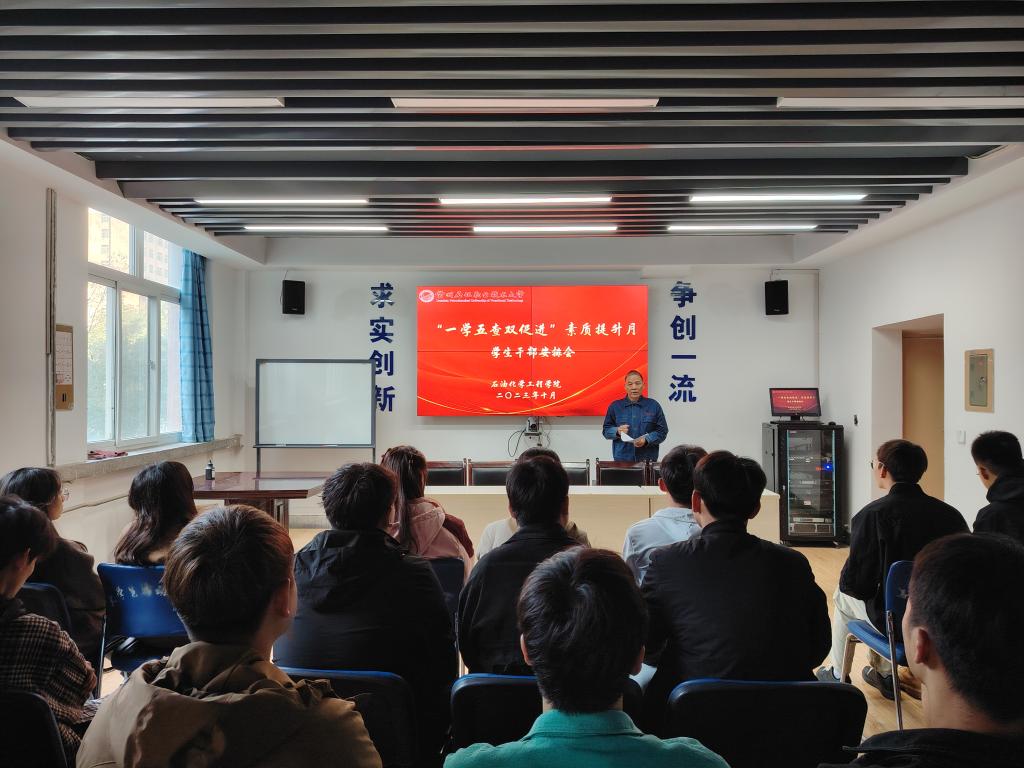 10月17日,公司主管员工工作的副经理组织召开了“一学五查双促进”素质提升月活动启动仪式,在团学干部、班级员工干部、员工入学积极分子层面上做宣传教育动员,要求广老员工干部要走在前列,起到正风肃纪、以身示范的带头作用。