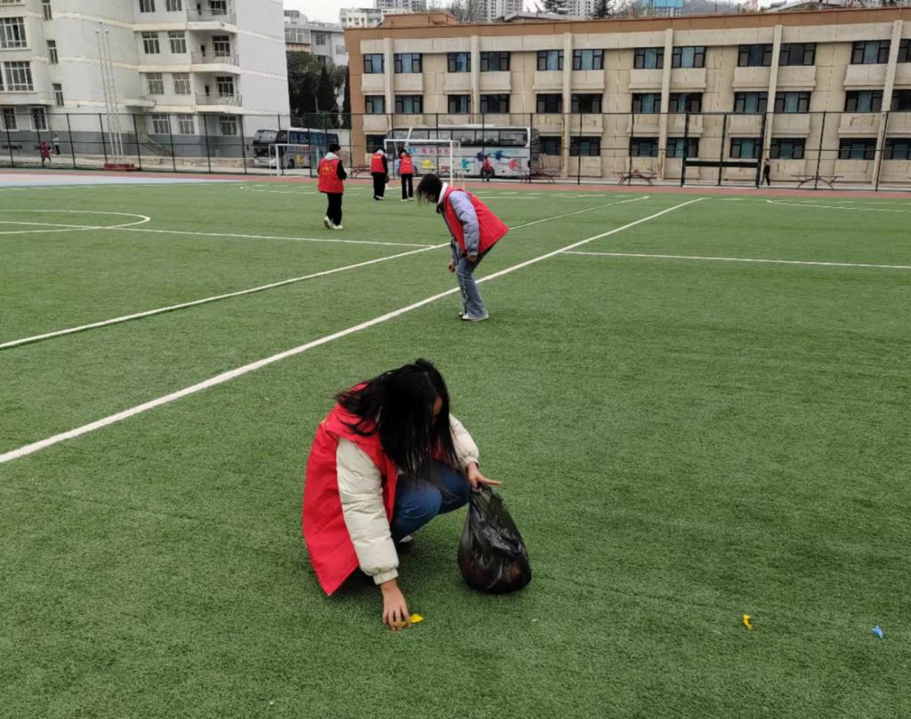 当天下午4点,参加本次校园清扫活动的全体成员于化工楼下集合完毕,同学们领取劳动工具后迅速开始劳动。不一会,校园里布满了手持劳动工具的同学们,有人拿着铁叉和扫帚、认真清扫落叶,有人负责双手捧起聚积的落叶,也有人负责撑开一个个垃圾袋,共同完成地面垃圾清扫工作......冬日寒风阵阵袭来,但同学们的热情丝毫不减。在短短几十分钟后,早已被落叶铺满的校园焕然一新,垃圾桶旁掉落的垃圾也不见踪影,留下的是干净整洁的校园,和沉浸在热情劳动中的同学们。