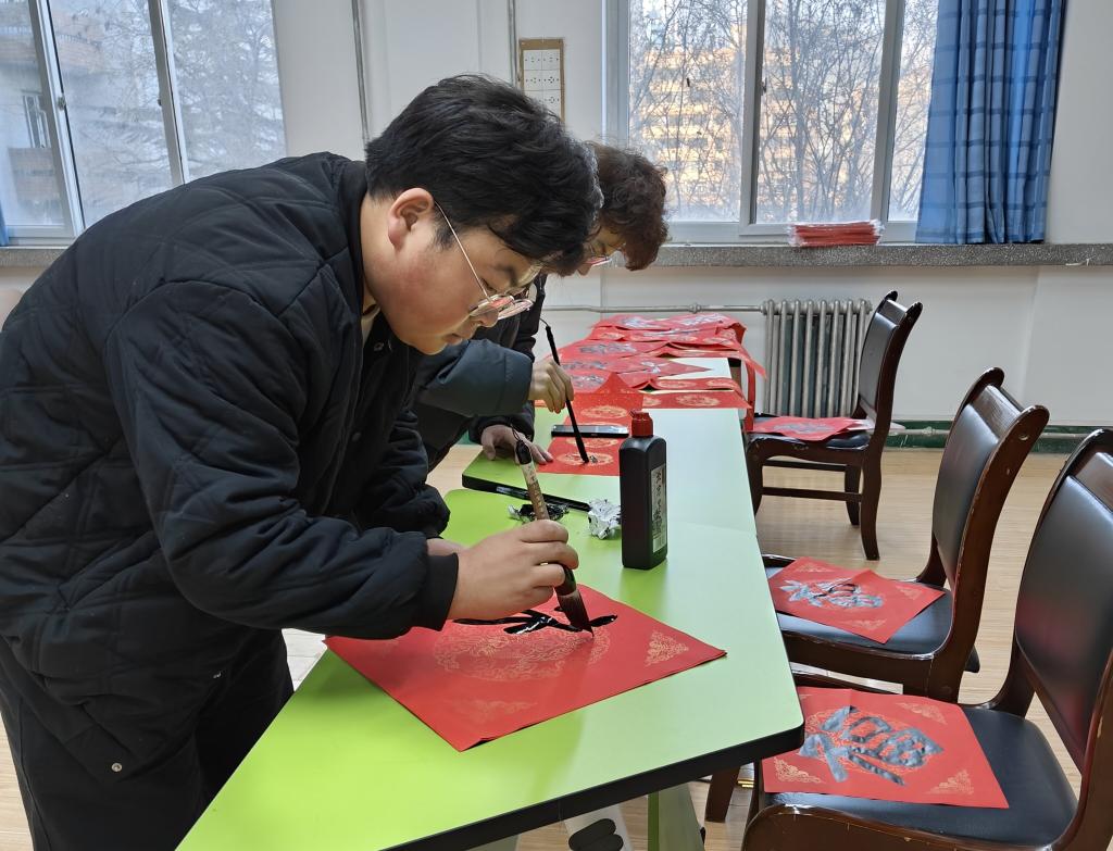 铺纸、蘸墨、起笔、刻画、剪纸……员工们全情投入,挥毫泼墨,起行顿收间,一副副春联、一张张“福”字跃然纸上,闻讯赶来的老师们喜笑颜开,现场气氛格外火热和喜庆,同学们将充满新年祝福的剪纸和春联亲自送到老师手中,传递辞旧迎新的美好愿望,表达对恩师的诚挚谢意和美好祝福。在场的师生被热烈的氛围所感染,共同感受喜庆祥和的气氛。